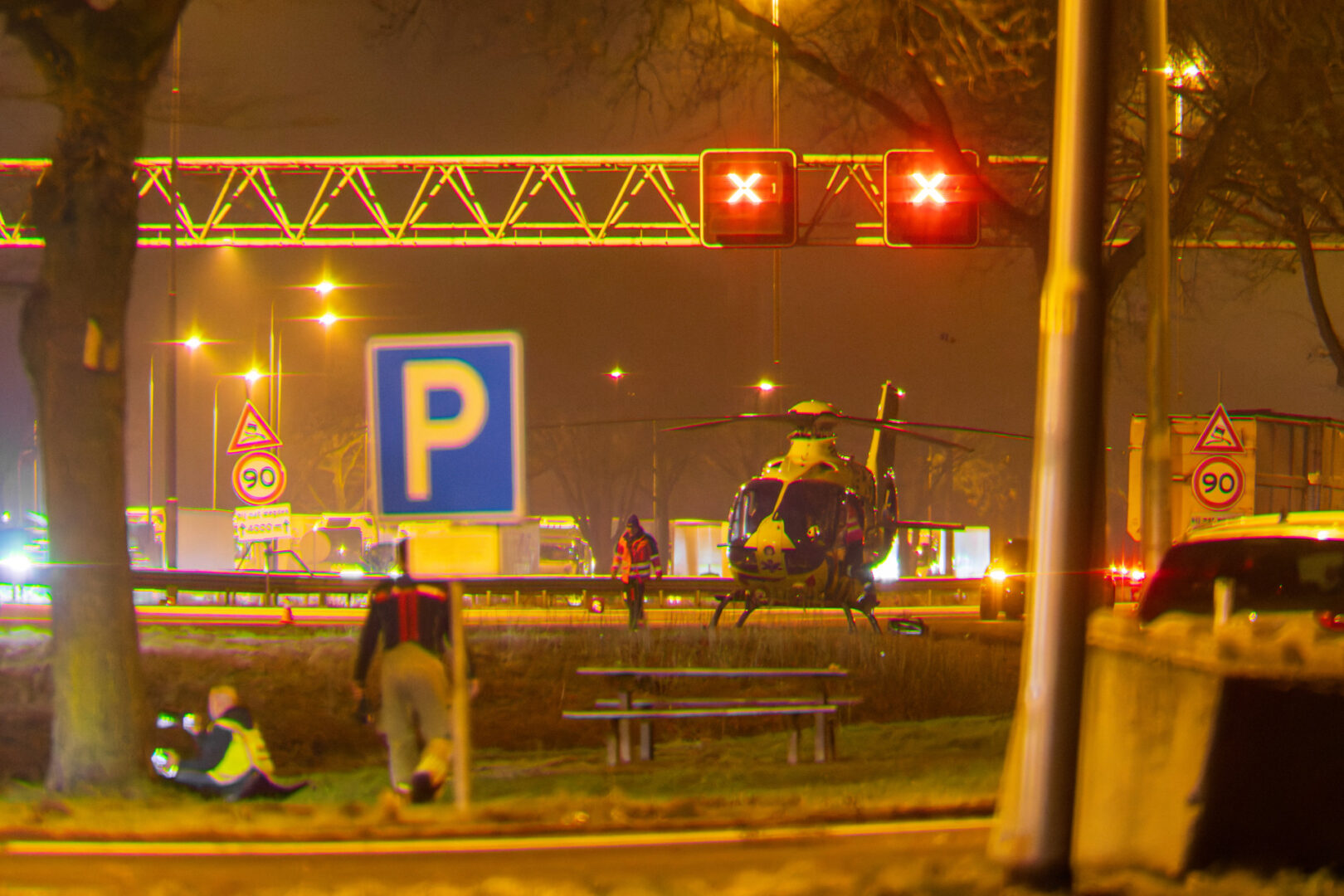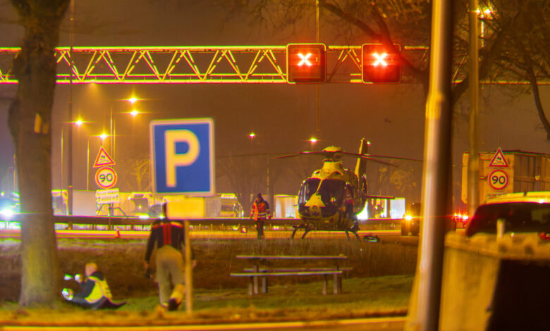 Snelweg dicht en zwaargewonde na ernstig ongeval; traumahelikopter op snelweg geland