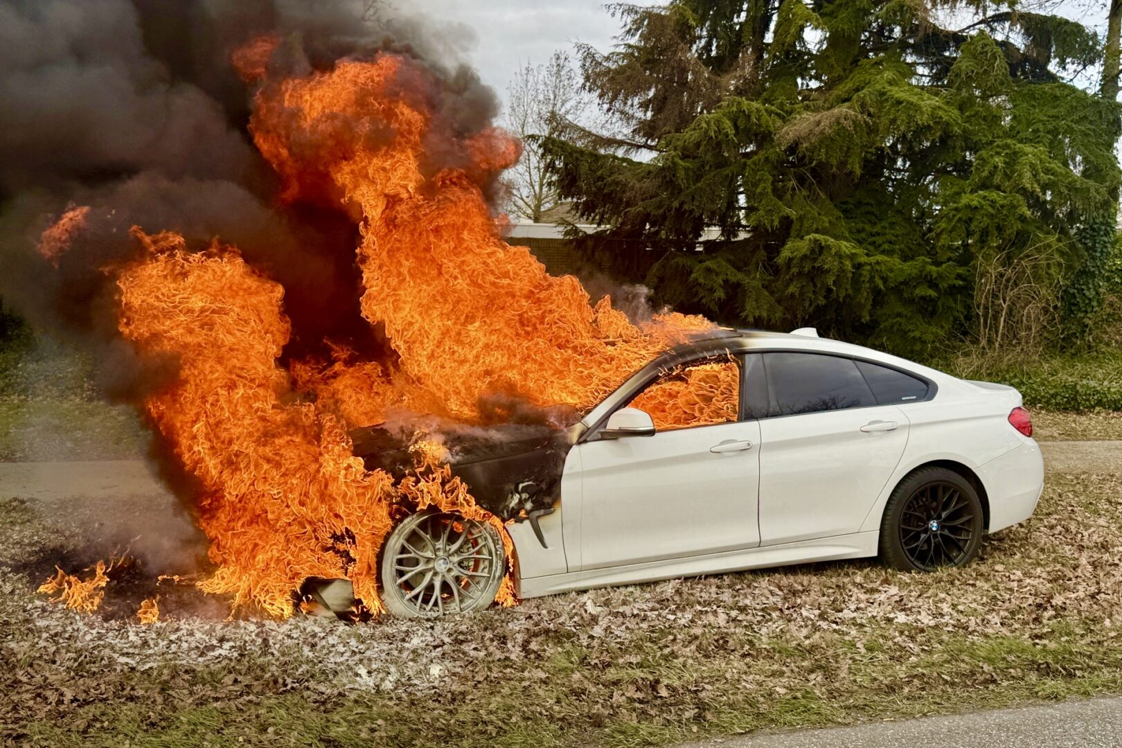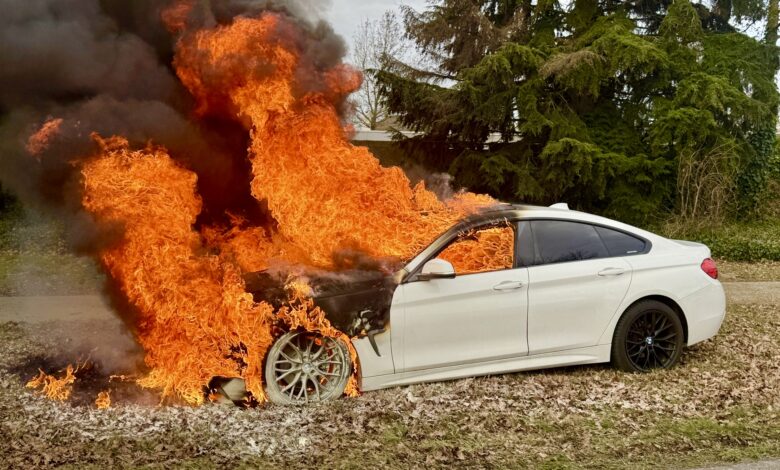 Enorme vuurzee verwoest personenauto