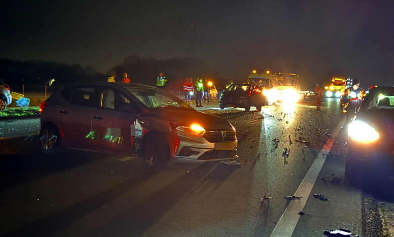 Snelweg dicht en grote ravage na ongeluk tussen vijf voertuigen
