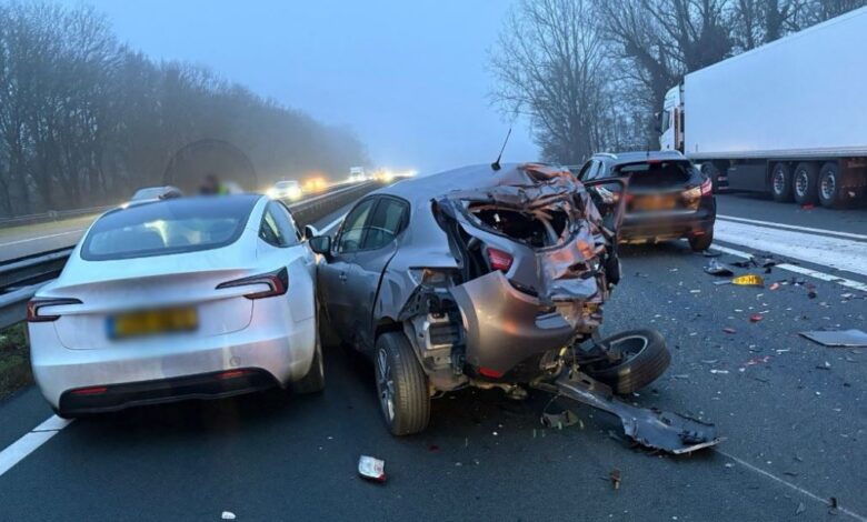 Ruim 45 minuten file na zwaar ongeval met meerdere auto’s
