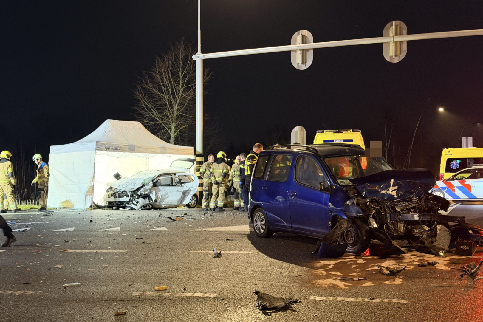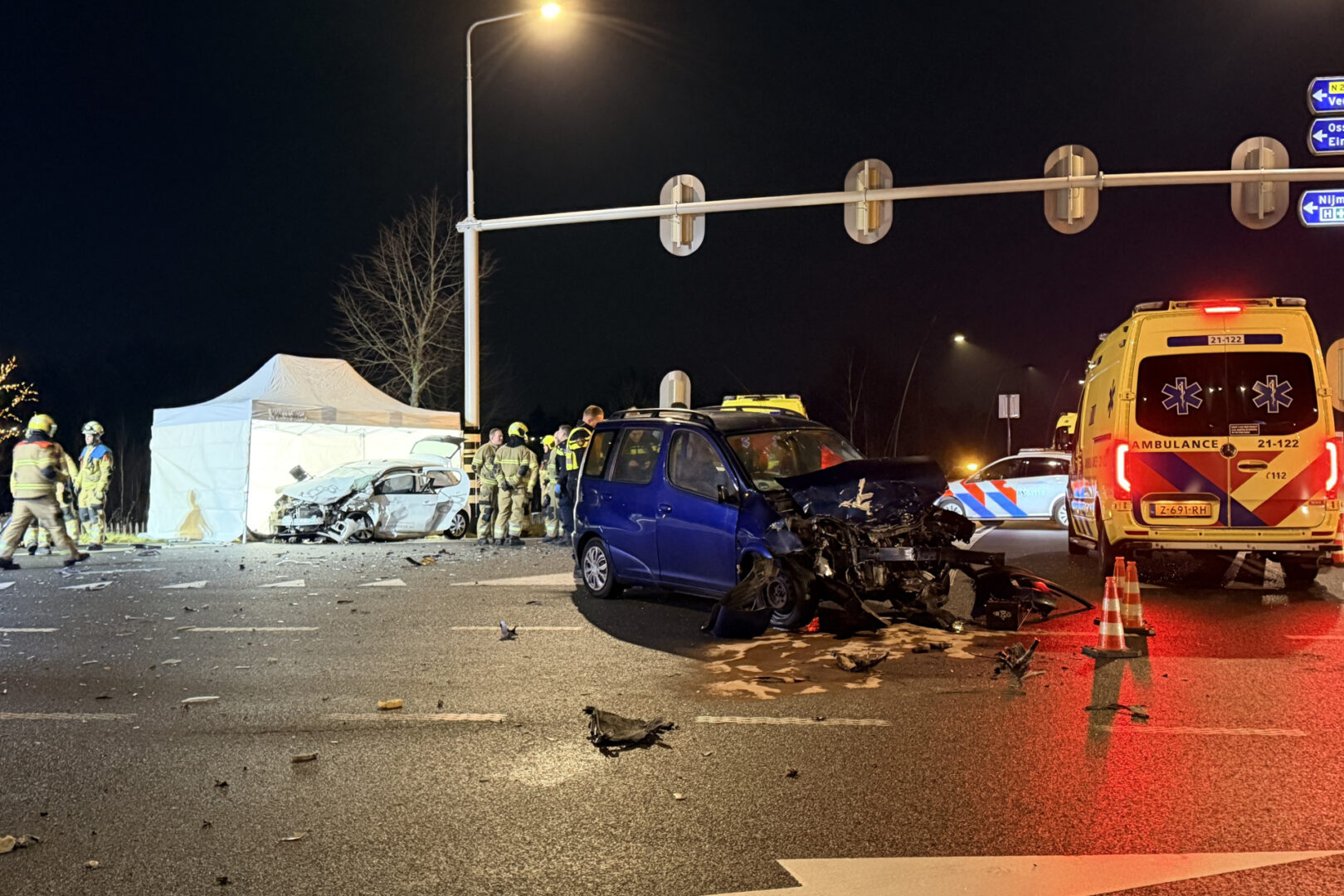 Door een nog onbekende oorzaak kwamen twee auto’s hard met elkaar in botsing. Door de kracht van de aanrijding raakten beide voertuigen zwaar beschadigd. Eén auto liep dusdanige schade op dat deze als total loss kan worden beschouwd. Over de rijbaan lagen verspreid diverse brokstukken van beide auto’s