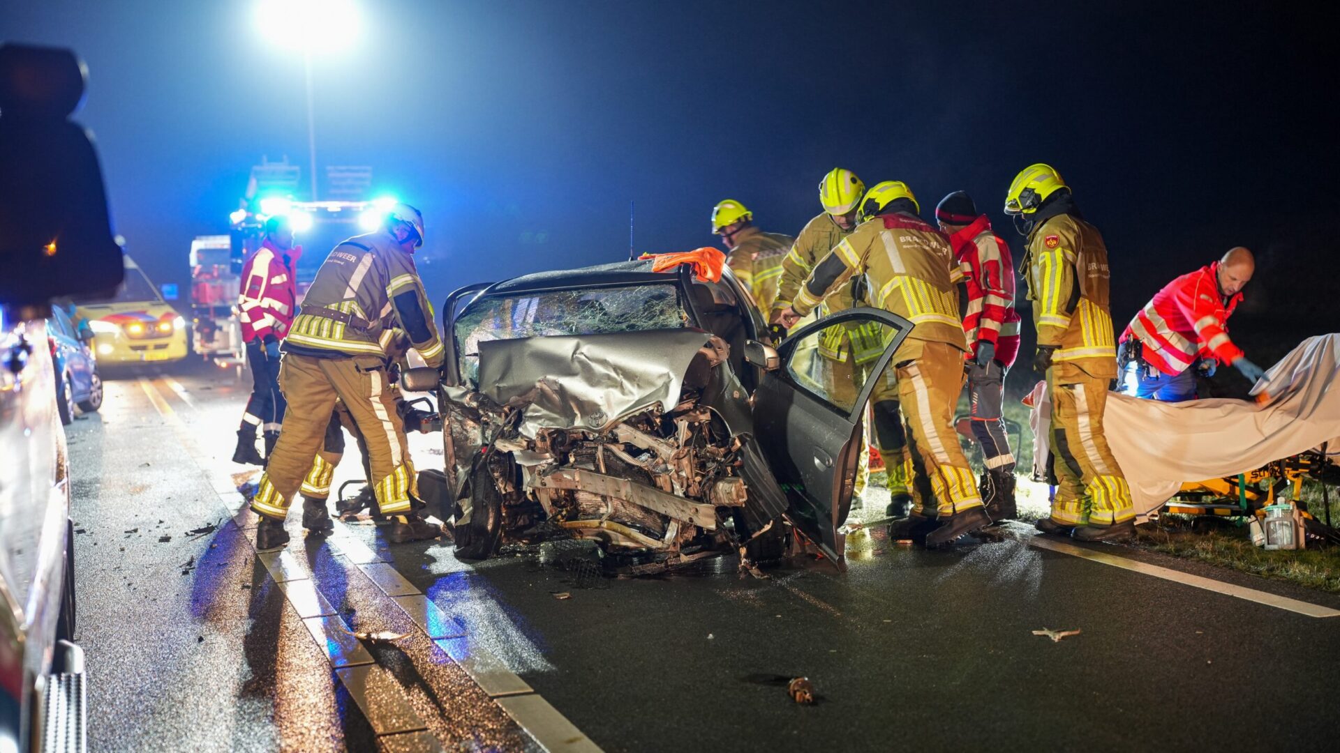 De brandweer heeft het zwaargewonde slachtoffer uit de auto bevrijd. Zij is met spoed overgebracht naar het ziekenhuis. Een tweede slachtoffer is eveneens naar het ziekenhuis vervoerd; over de aard van het letsel is niets bekend.