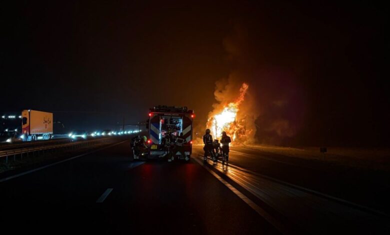 Snelweg volledig dicht vanwege uitslaande vrachtwagenbrand