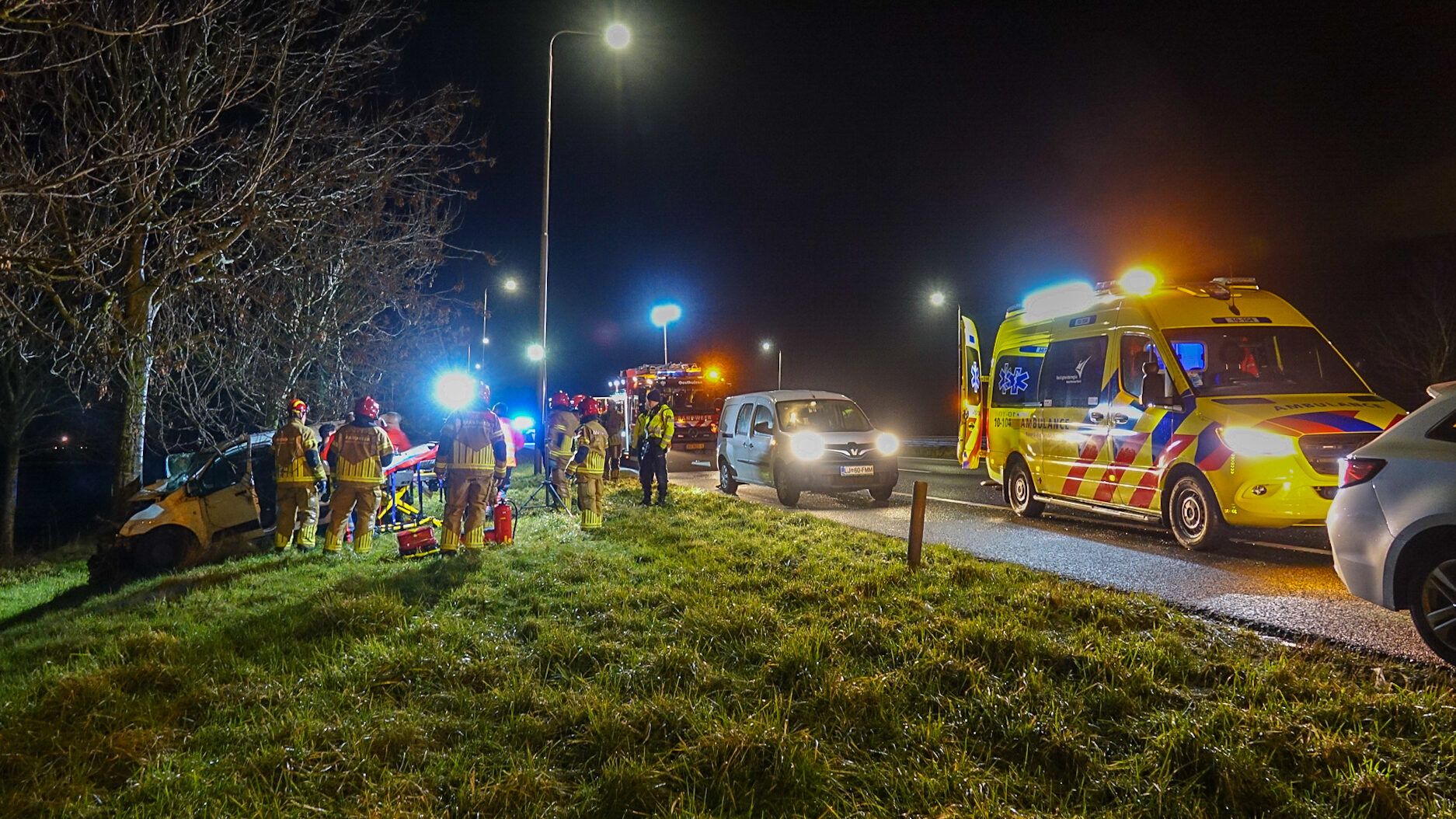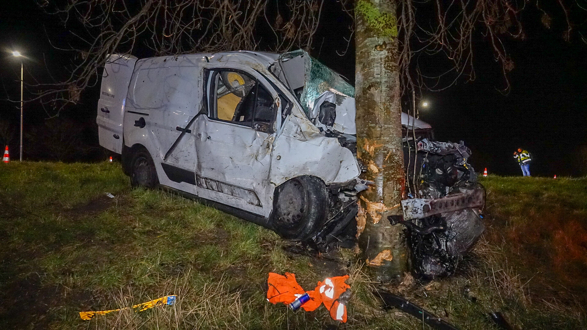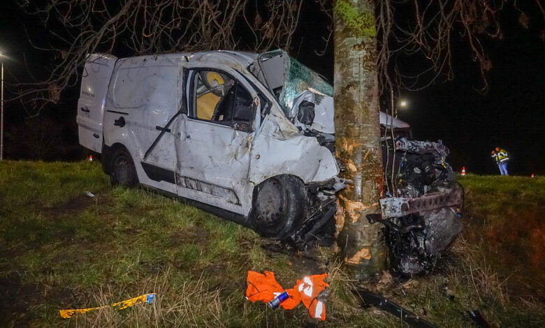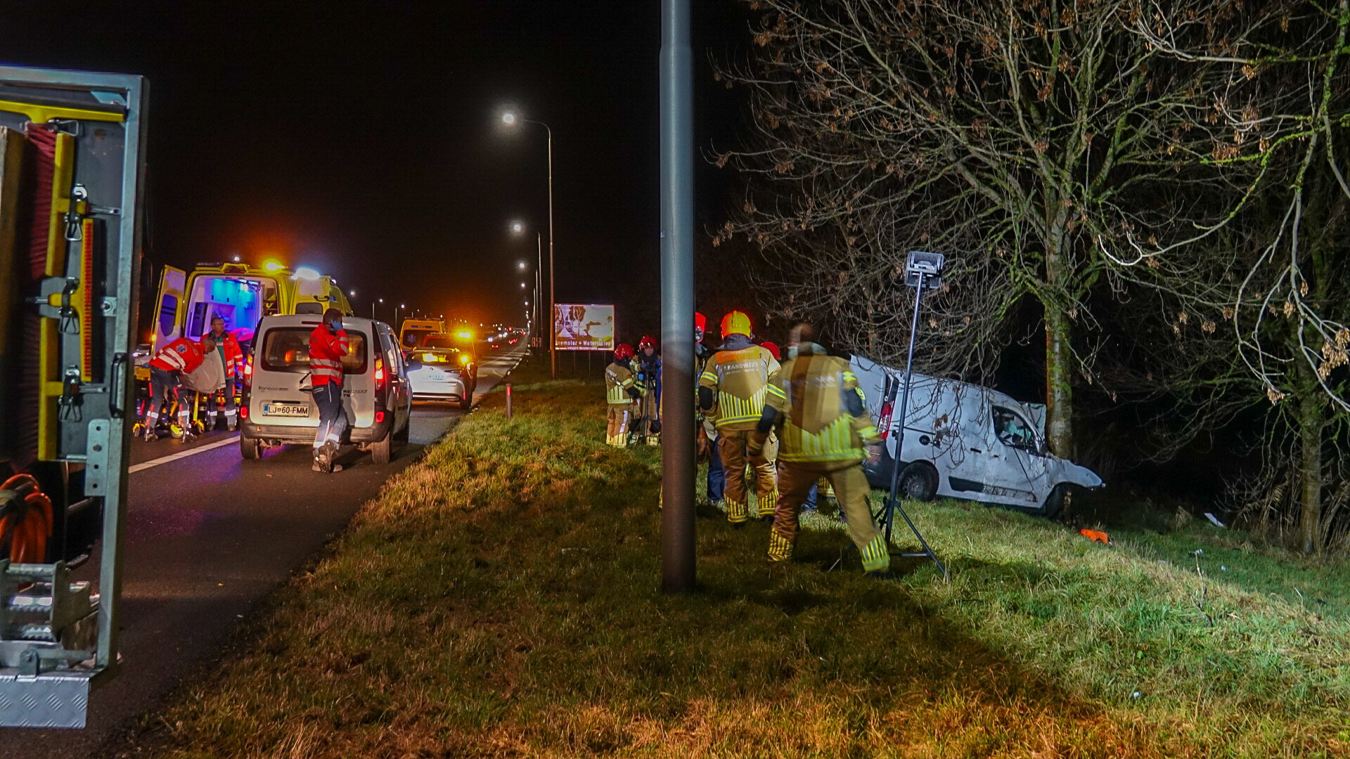 Zware crash langs snelweg; bestelbus botst frontaal tegen boom