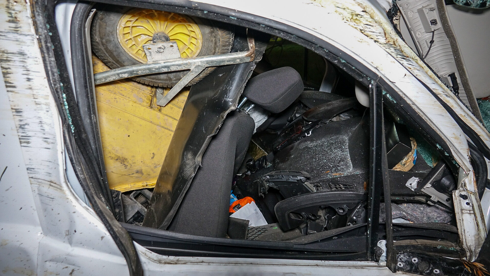 Door een nog onbekende oorzaak raakte een bestelbus van de weg en botste tegen een boom naast de snelweg. Voorafgaand aan de botsing schampte het voertuig meerdere bomen.