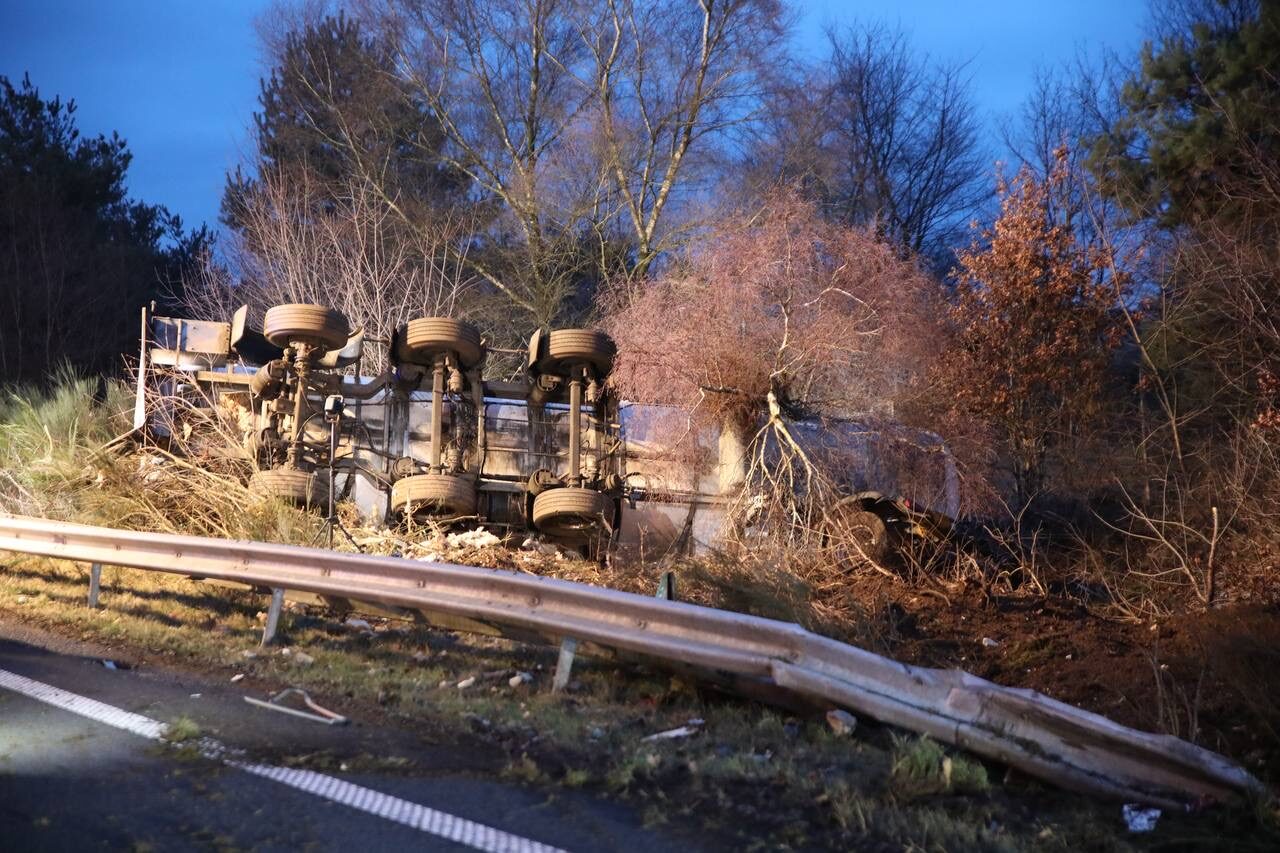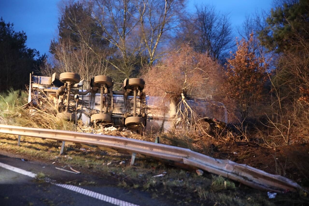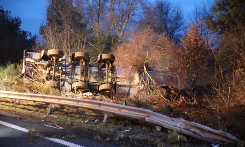 Zware crash op snelweg; vrachtwagen gekanteld in de berm