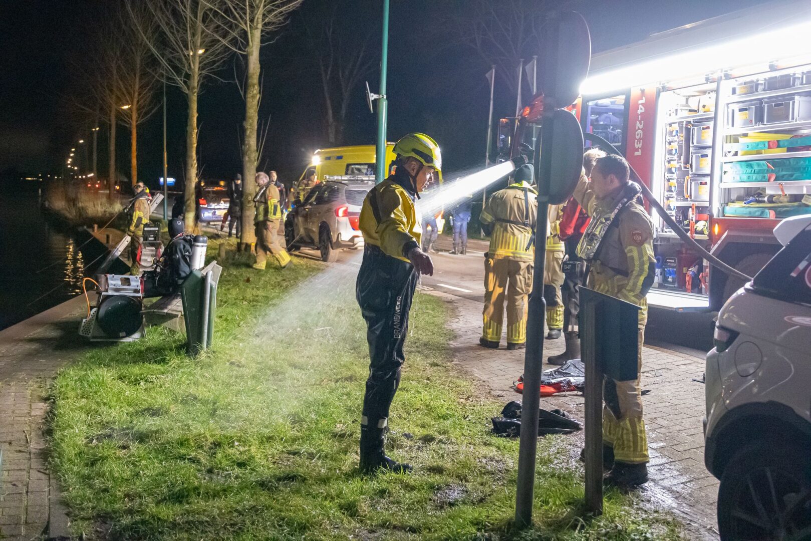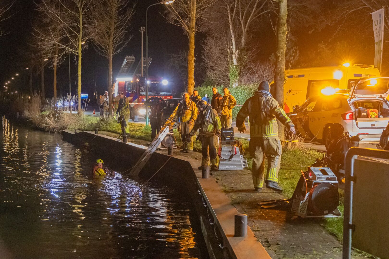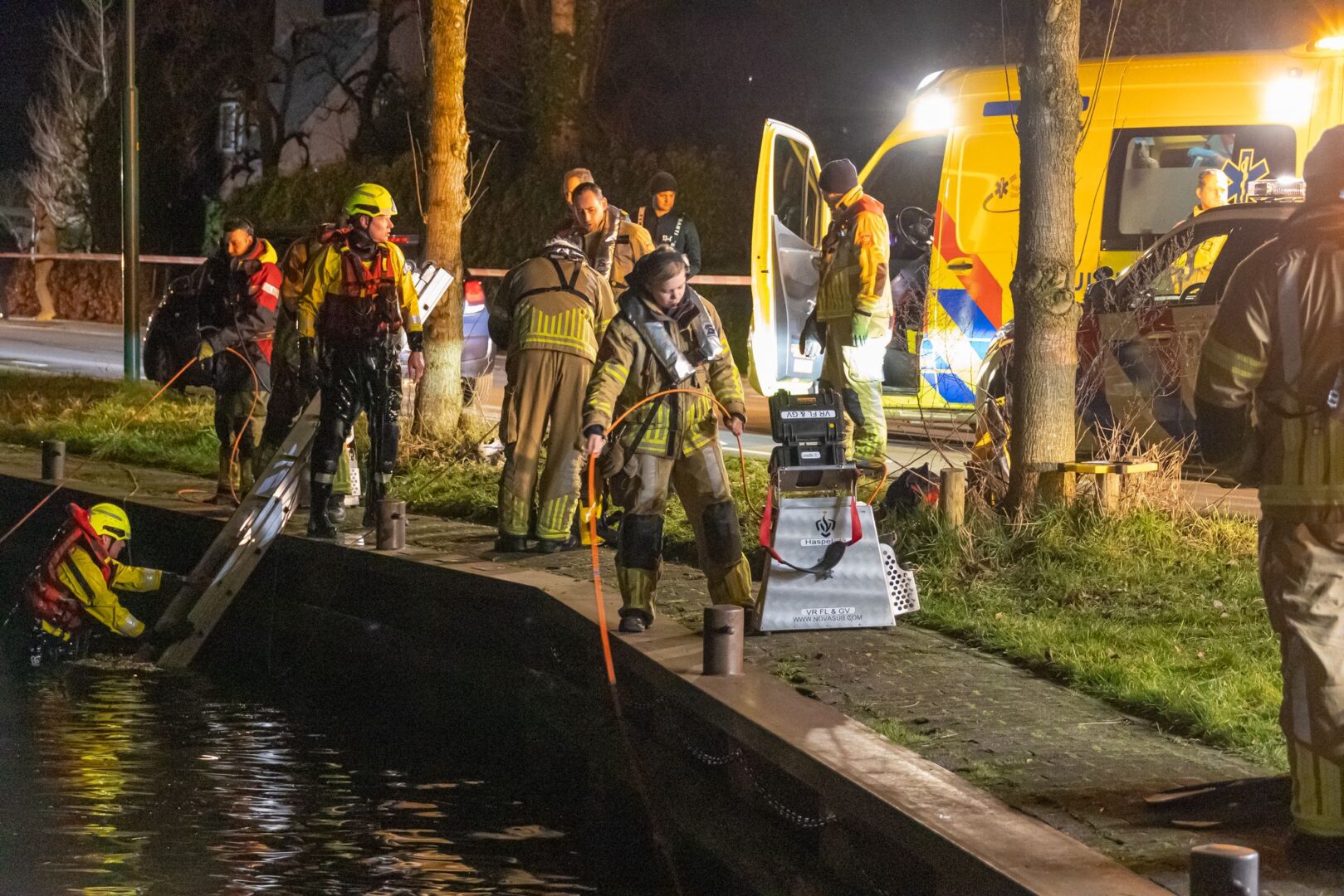 Hoe de persoon in het water terecht is gekomen, wordt nog onderzocht. Op de weg stond een zwarte auto, die door een bergingsbedrijf is afgesleept. De weg werd tijdelijk afgesloten voor hulpverlening en onderzoek.