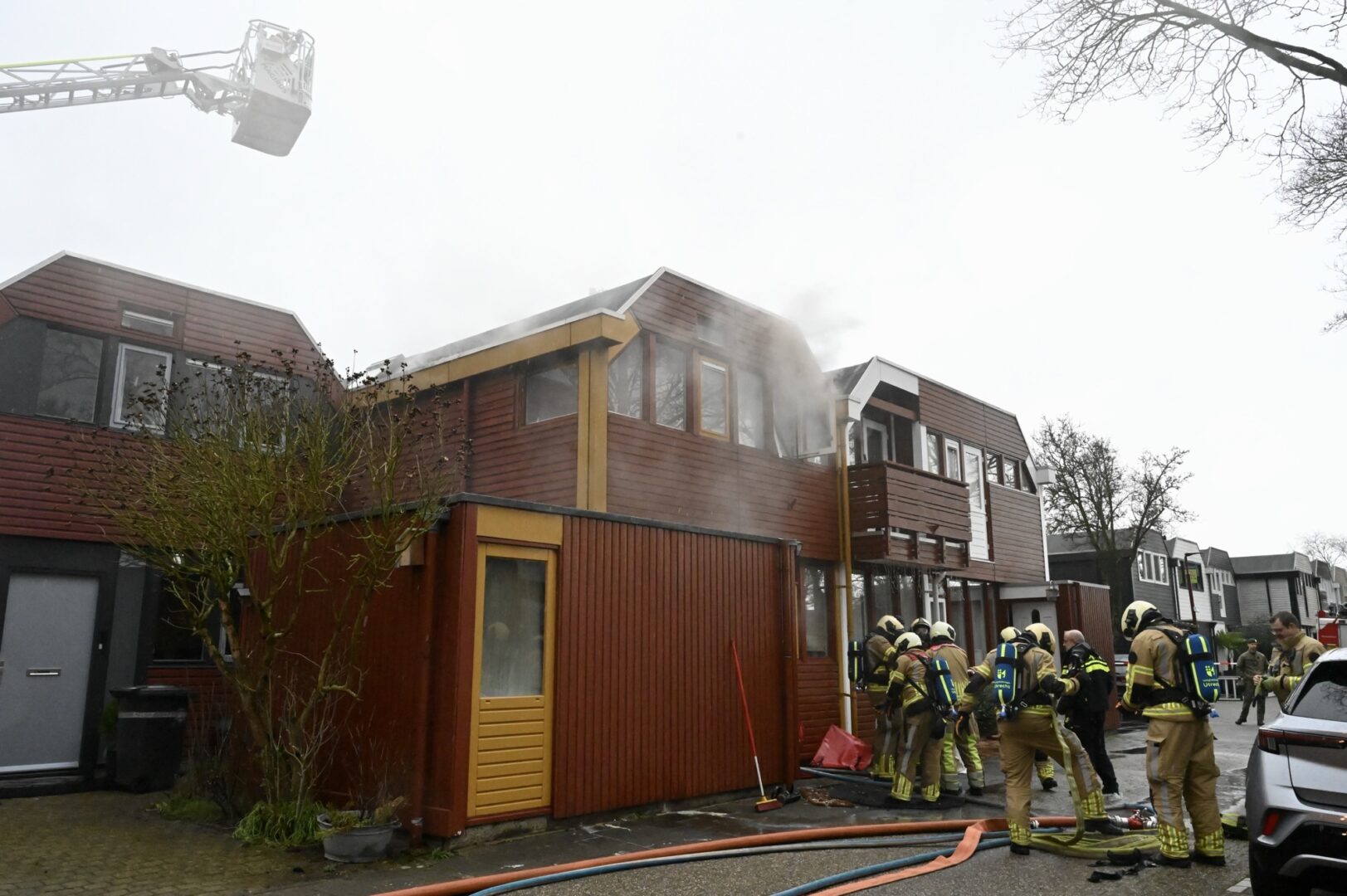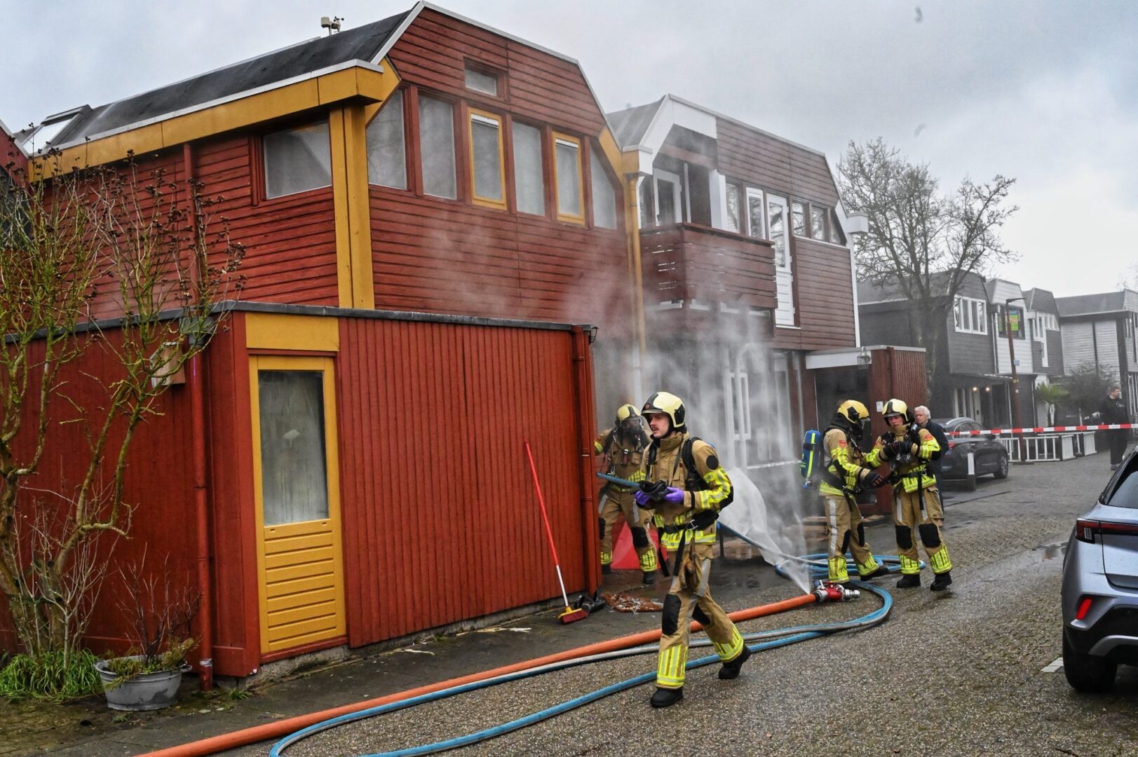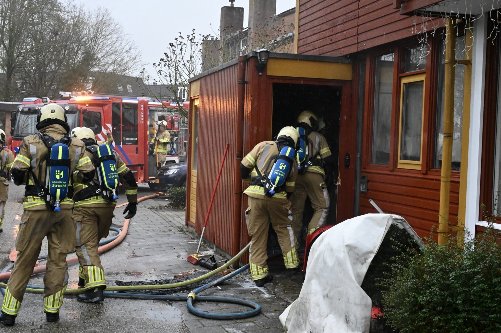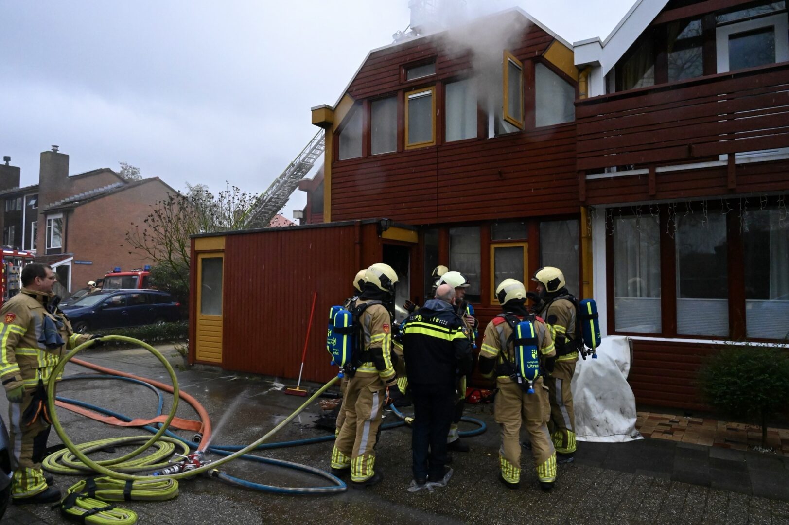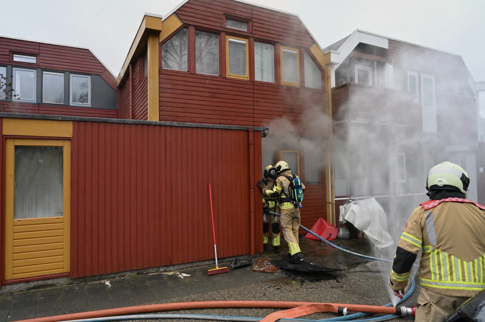Brandweer probeert omliggende woningen te redden bij woningbrand