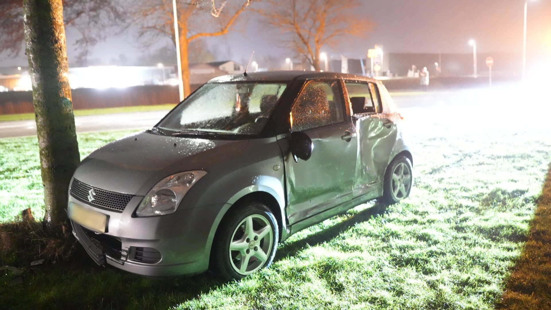 Een automobiliste botste door nog onbekende oorzaak op een ambulance. Door de klap raakte de personenauto van de weg en kwam deze tot stilstand tegen een boom.