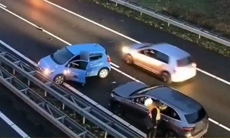 Op beelden van Rijkswaterstaat is te zien dat een auto overdwars op de snelweg staat. Door het incident is een vertraging ontstaan die kan oplopen tot bijna een uur. Een berger is opgeroepen om het betrokken voertuig af te slepen.
