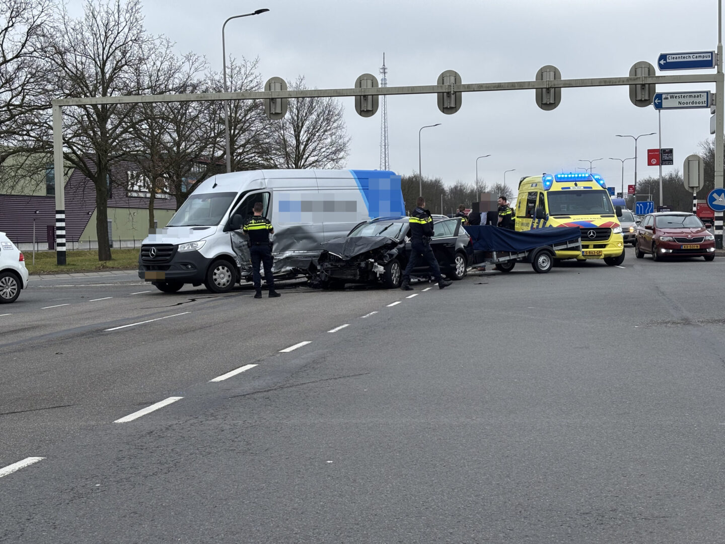 Enorme schade na ongeval op kruispunt
