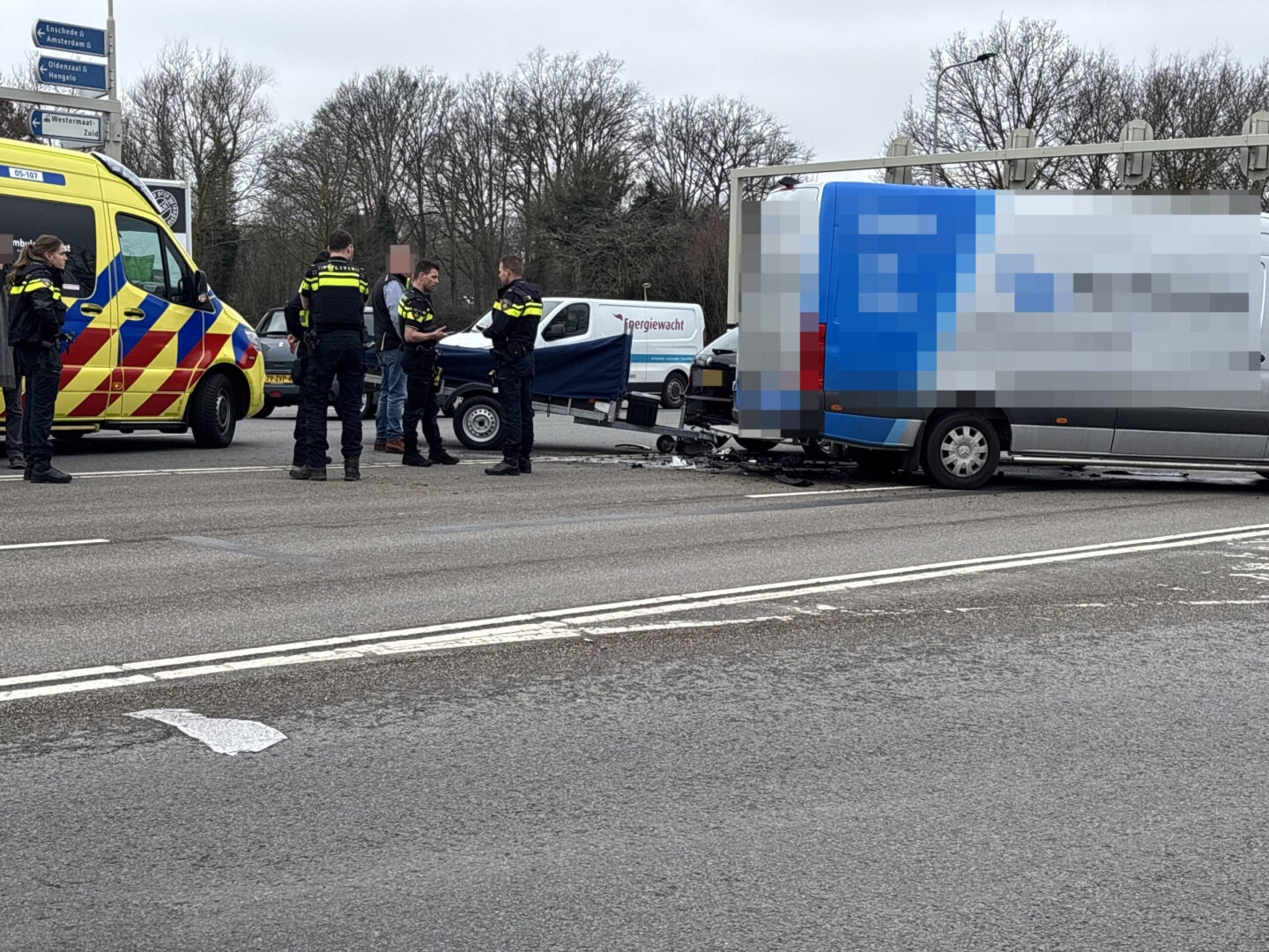Ter plaatse bleek er een aanrijding te zijn geweest tussen een bestelbus en een personenauto met aanhanger. De kruising is door het ongeval enige tijd deels afgesloten geweest. Vooral het verkeer richting Borne ondervond veel hinder.