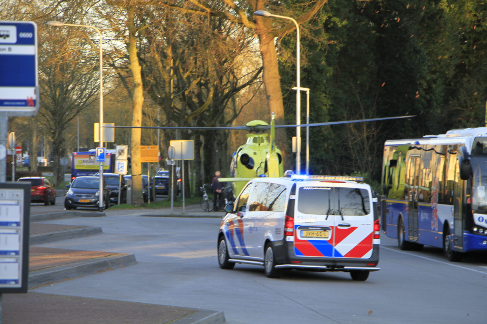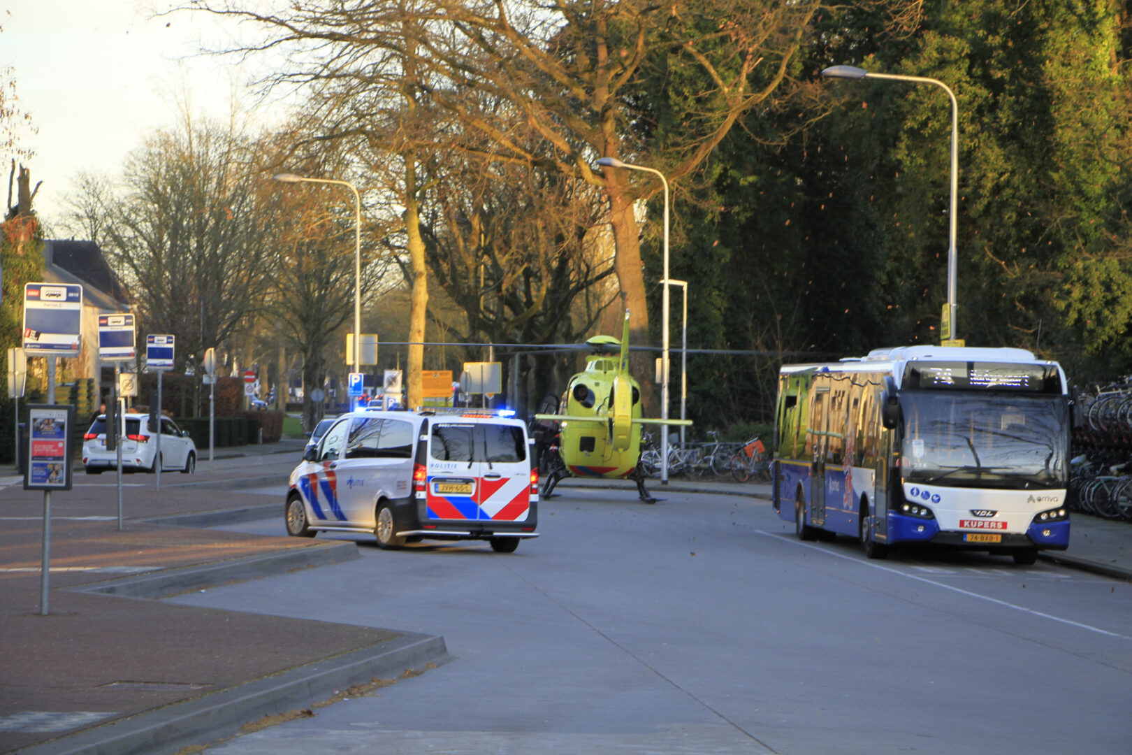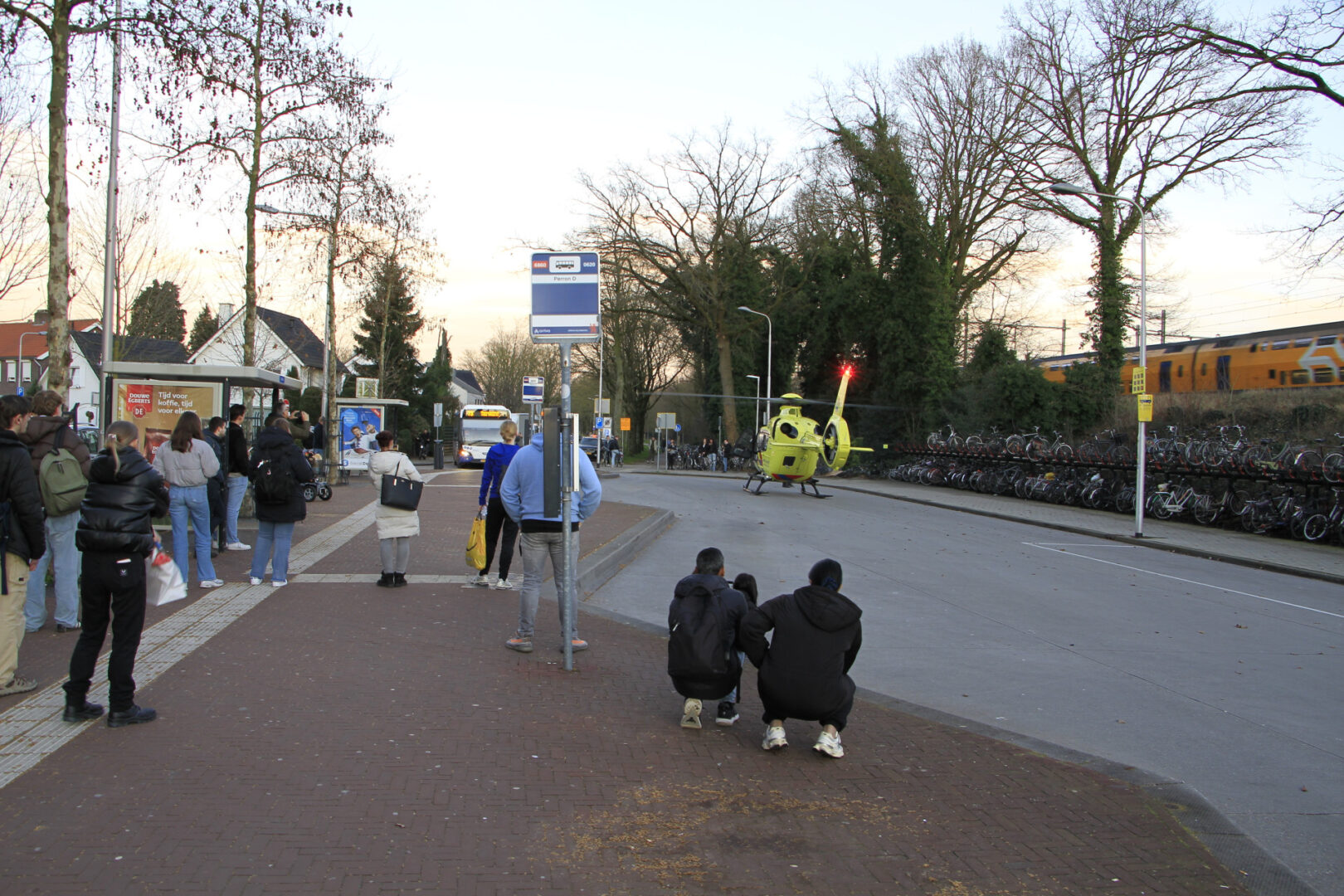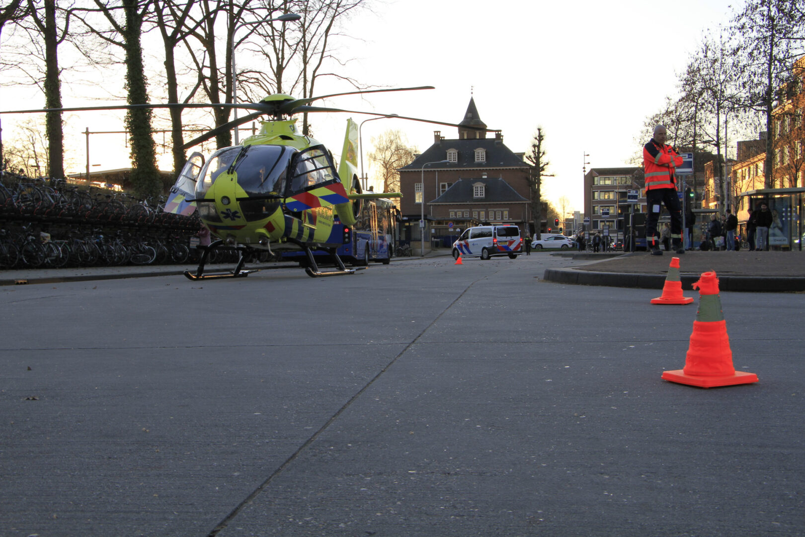 De helikopter landde op het nabijgelegen busstation. Ook daar werd een gedeelte afgezet, waardoor bussen moesten omrijden om passagiers op te halen en af te zetten. Over de toestand van het slachtoffer is vooralsnog niets bekend.