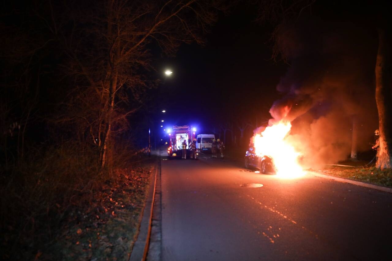 Bij aankomst van de hulpdiensten stond het voertuig al volledig in brand. Voor de auto viel niets meer te redden. De brandweer heeft het vuur geblust, maar kon verdere schade aan het voertuig niet voorkomen.