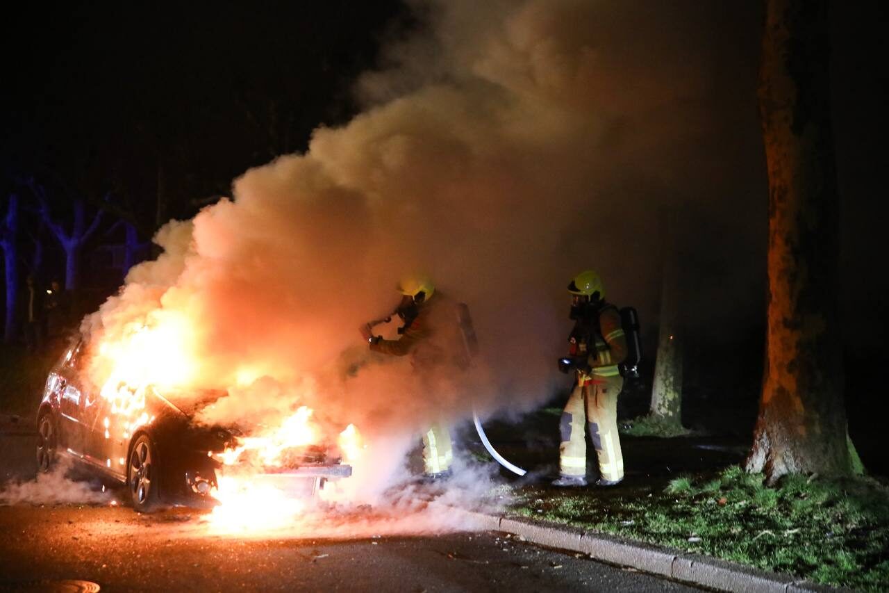 Felle vuurzee verwoest auto, politie doet onderzoek