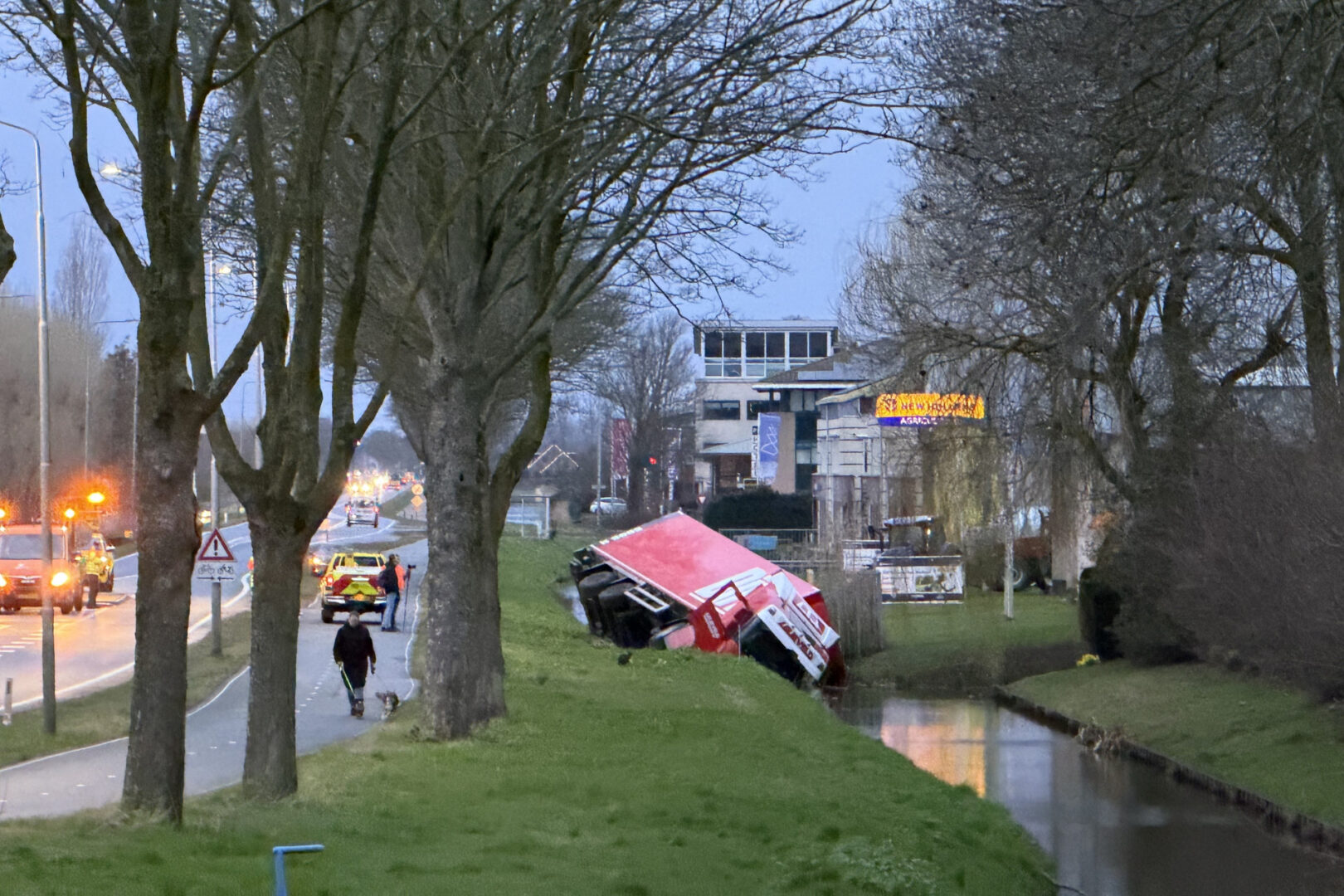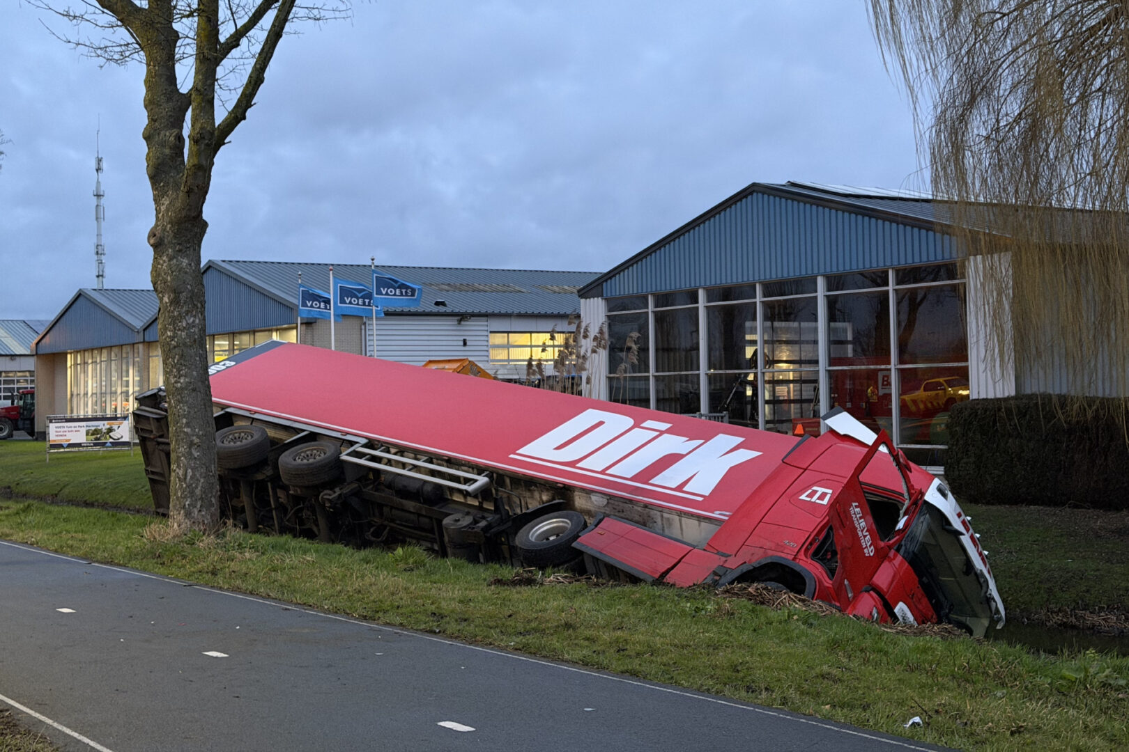 In de vroege ochtend van zaterdag is een vrachtwagen naast de rijbaan terechtgekomen langs de Hoogeveenseweg in Boskoop. Het voertuig kwam uiteindelijk tot stilstand in een naastgelegen sloot.
