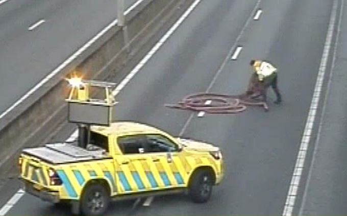 Op de A1 richting Amsterdam is maandagochtend een slang (geen dier) aangetroffen ter hoogte van Naarden. Hoe de slang op de snelweg terecht is gekomen, is niet bekend.