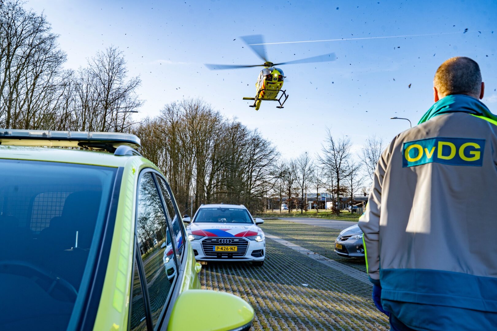 Hulpdiensten rukten rond 16.15 uur massaal uit. Naast twee ambulances en de brandweer werd ook een traumahelikopter ingezet. Deze kwam aan de grond op de carpoolplaats langs de N345 om medische assistentie te verlenen.