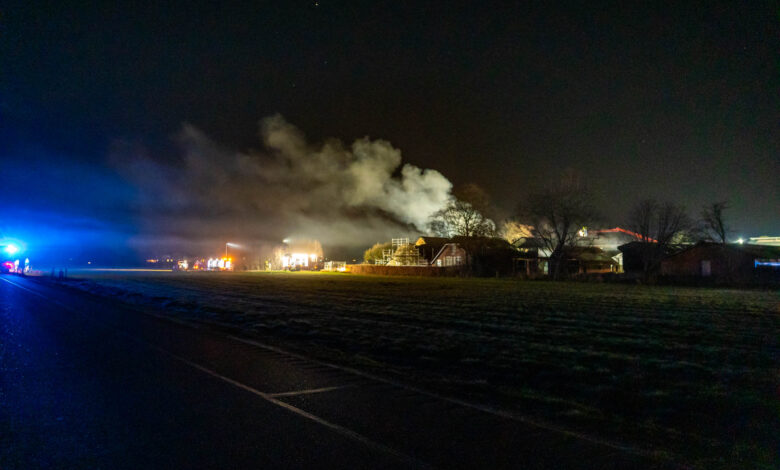 Aanvankelijk waren twee kapschuren bij de brand betrokken. Later bleef nog één schuur branden, waarin hooi lag opgeslagen. De brandweer wist het vuur uiteindelijk onder controle te krijgen, maar verwacht nog geruime tijd bezig te zijn met nabluswerkzaamheden.