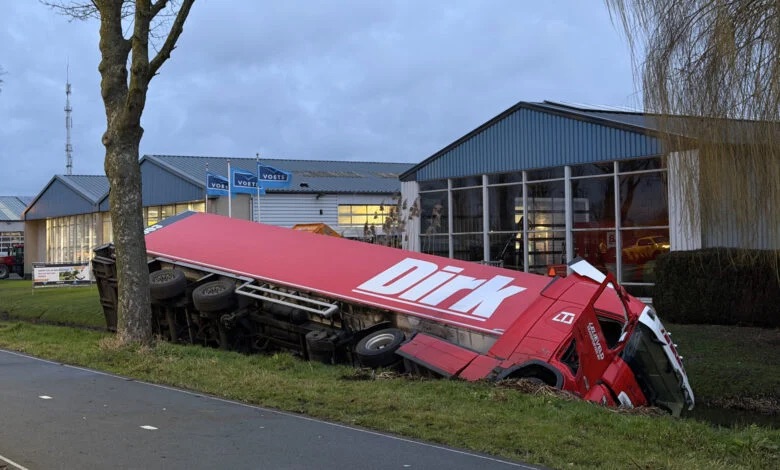 Chauffeur (66) overleden in ziekenhuis nadat vrachtwagen te water raakt