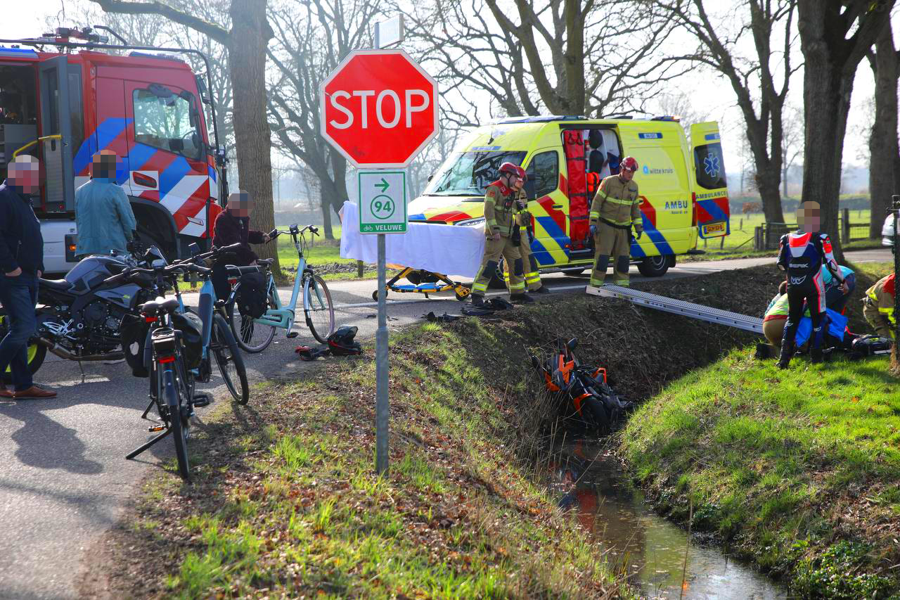 Fors ongeval tussen motorrijder en auto; brandweer met spoed ingezet