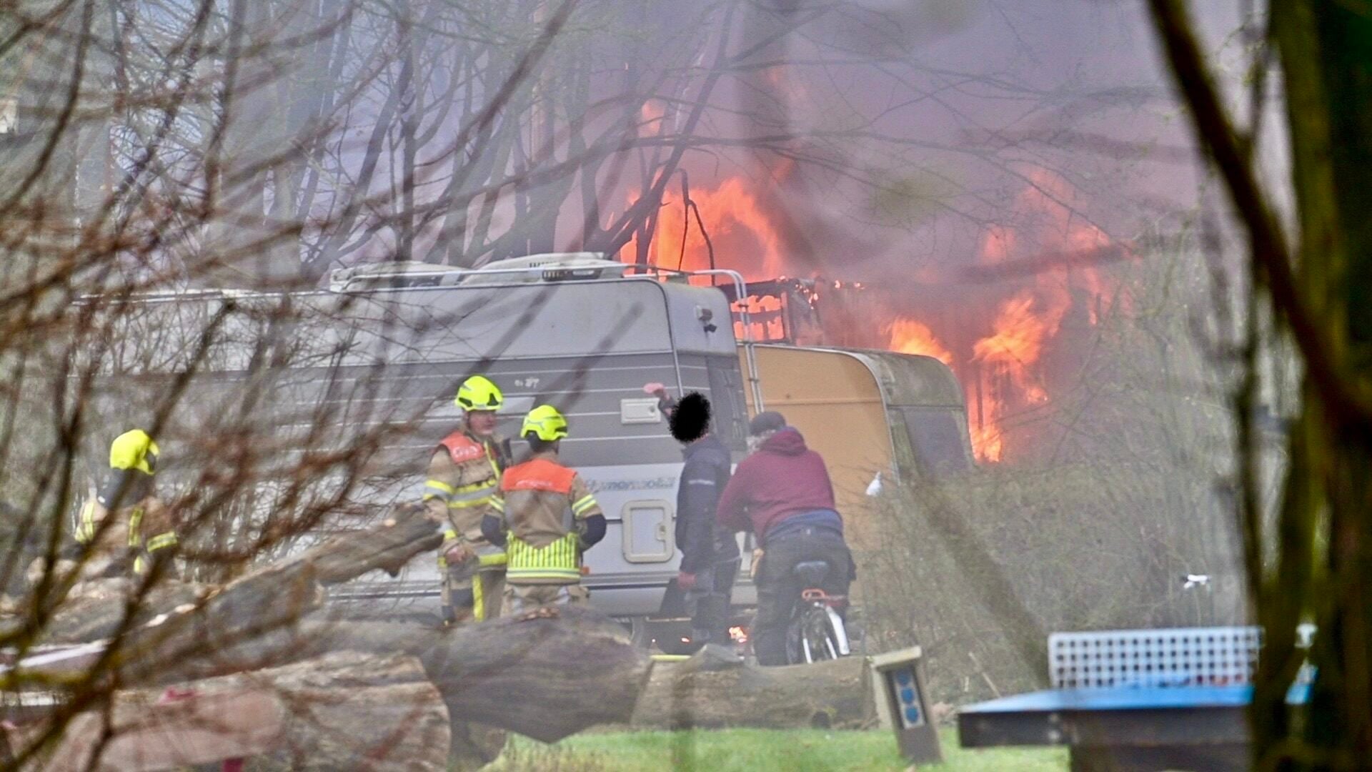 Zeer grote uitslaande brand op camping
