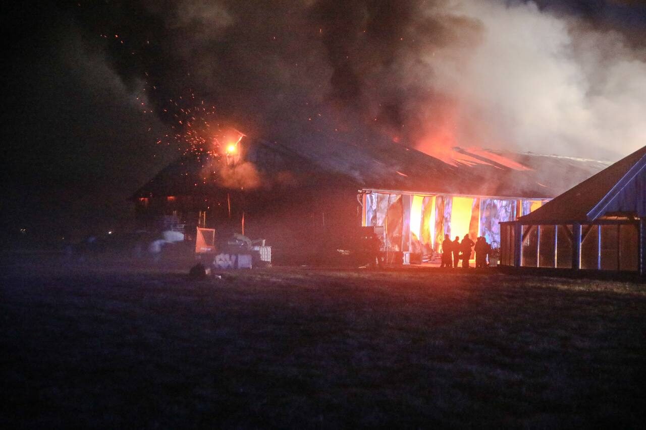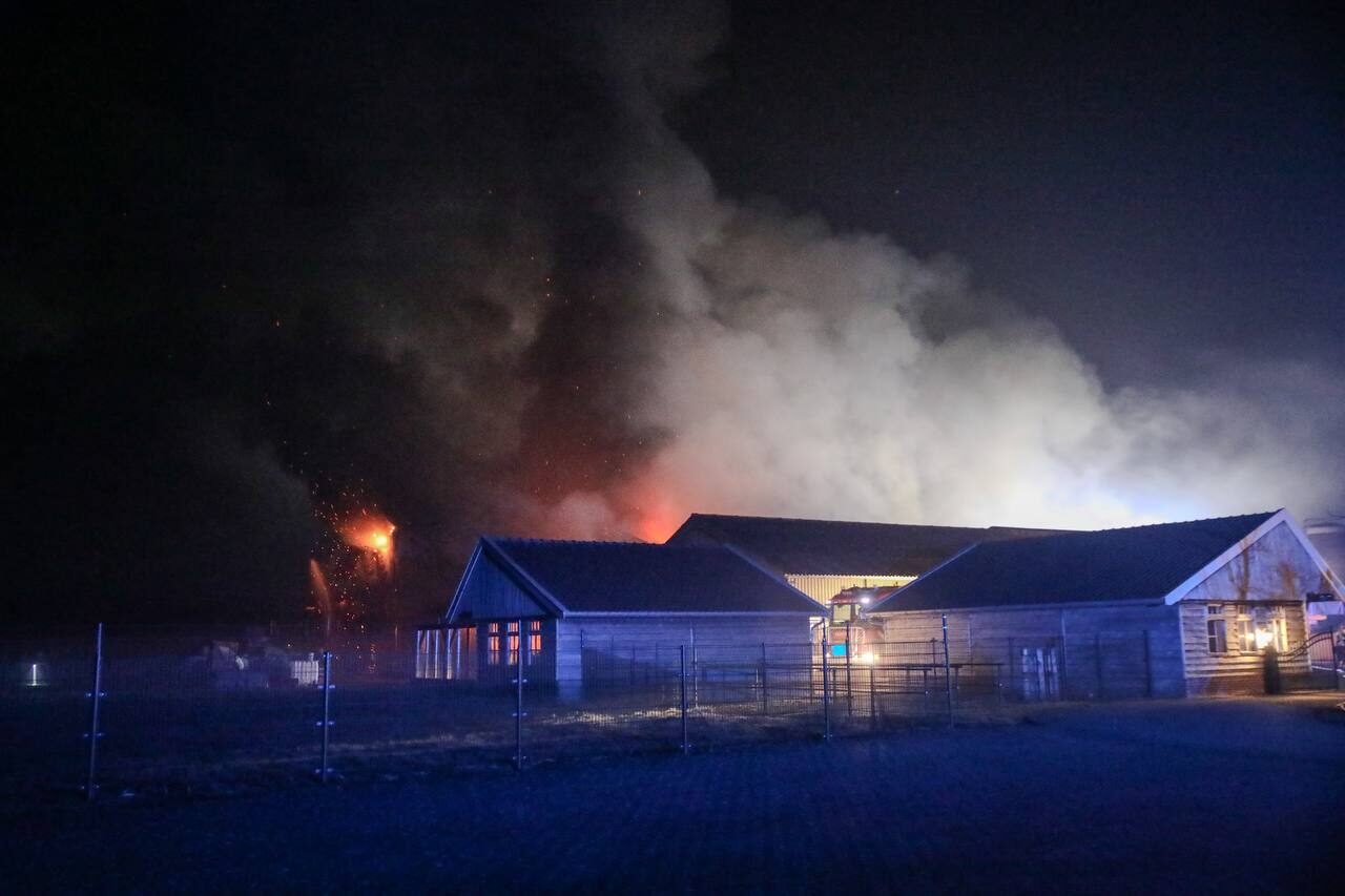 Bij aankomst van de brandweer stond de stal al grotendeels in brand. Brandweerlieden zijn direct begonnen met blussen om te voorkomen dat het vuur zich verder zou uitbreiden naar omliggende percelen.