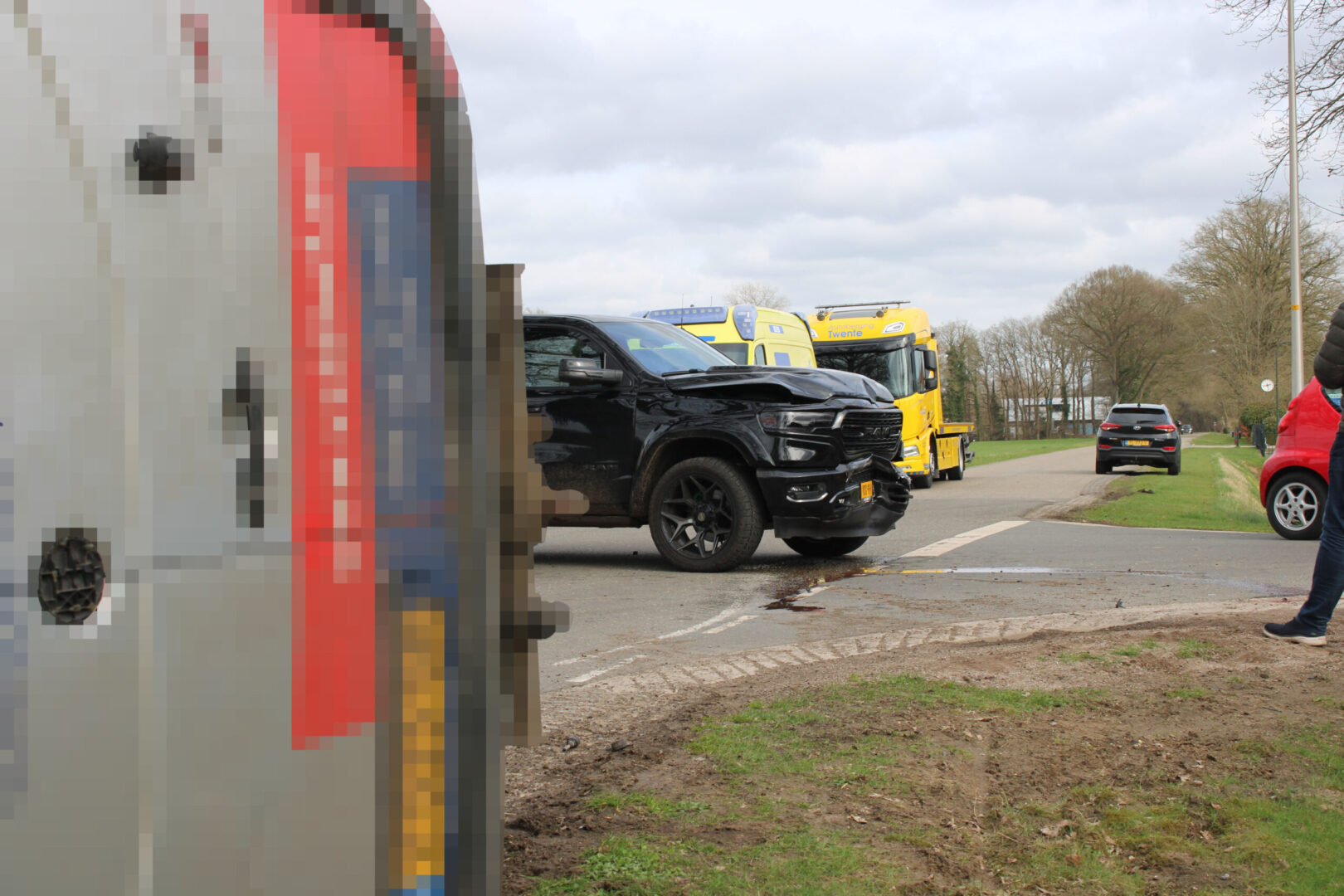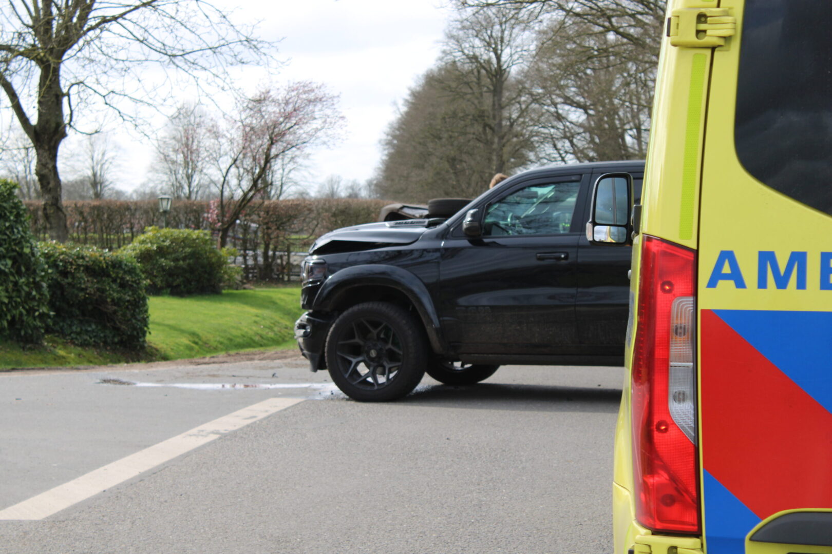 Op de kruising van de Saterlossestraat met de Postweg in Saasveld heeft rond 13:55 uur een verkeersongeval plaatsgevonden tussen een pick-up en een bestelbusje.
