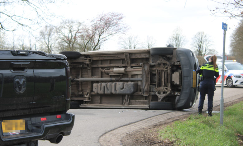 Bestelbus gekanteld na forse botsing met pick-up
