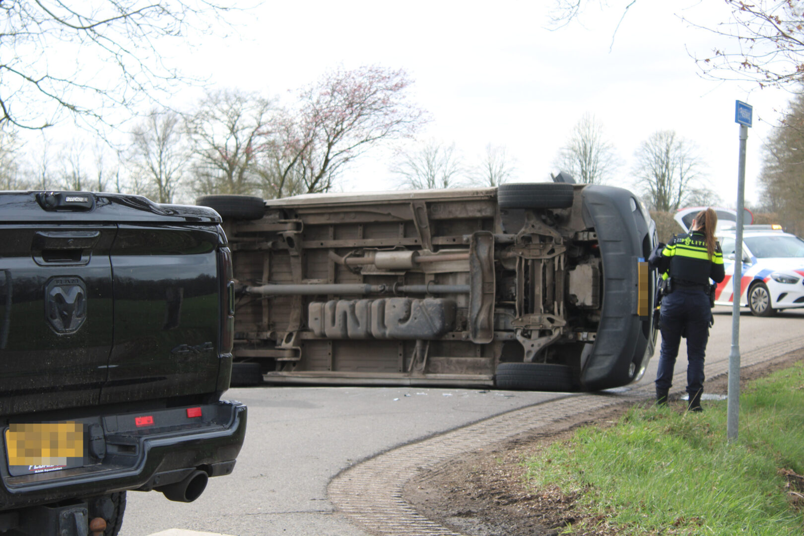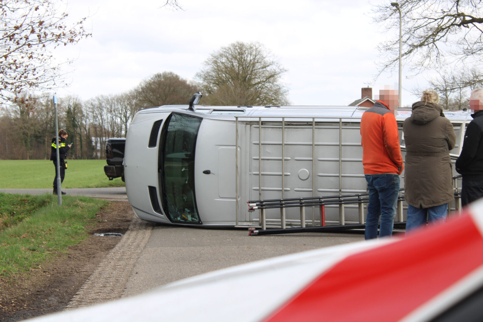 Bij aankomst van de hulpdiensten bleek het busje door de botsing op de zijkant te zijn beland. Ambulancepersoneel heeft één persoon gecontroleerd in de ambulance. Niemand hoefde uiteindelijk naar het ziekenhuis vervoerd te worden.