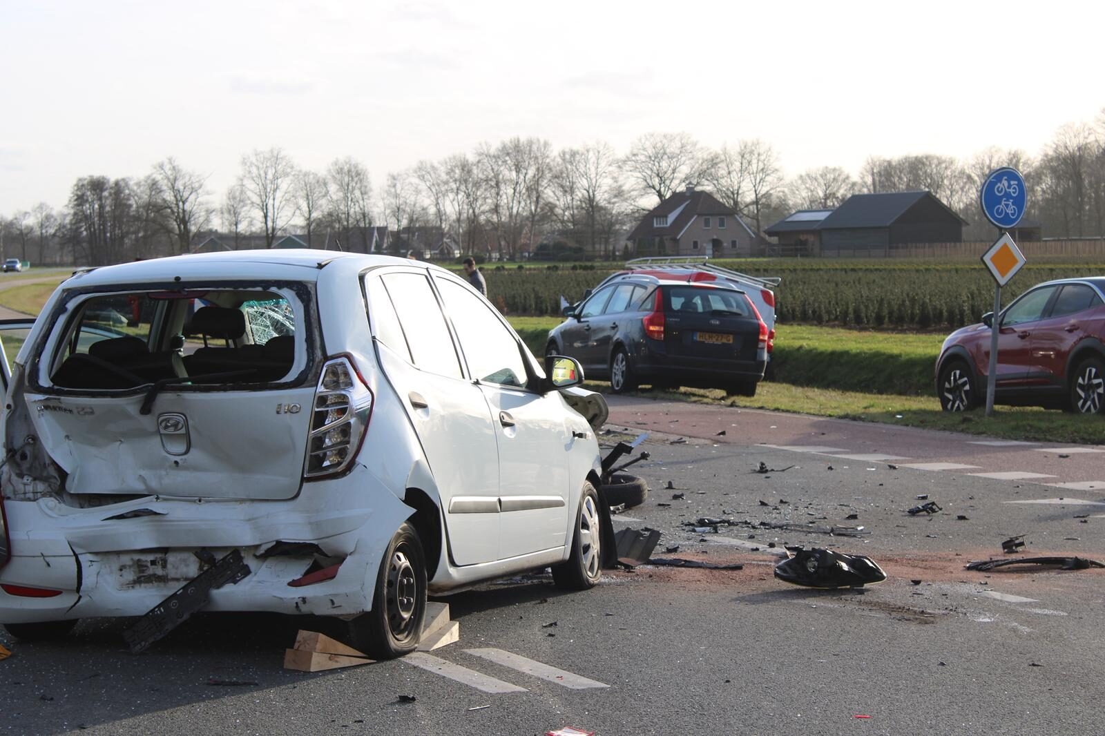 Zwaar ongeval en enorme ravage; drie voertuigen zwaar beschadigd