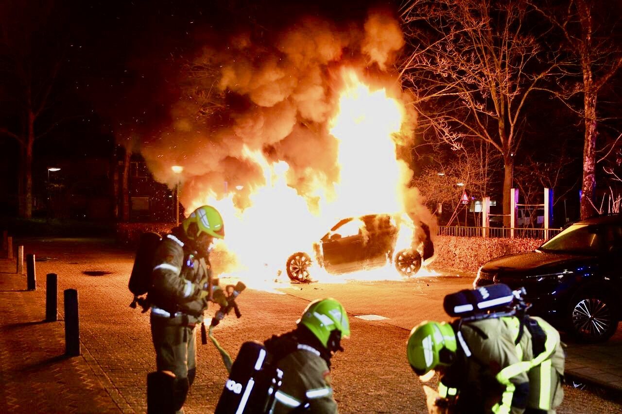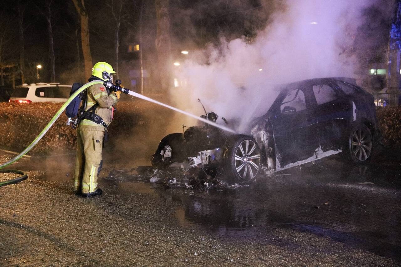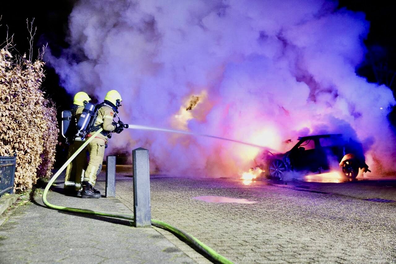 Enorme vuurzee verwoest auto, brandweer lange tijd bezig met blussen