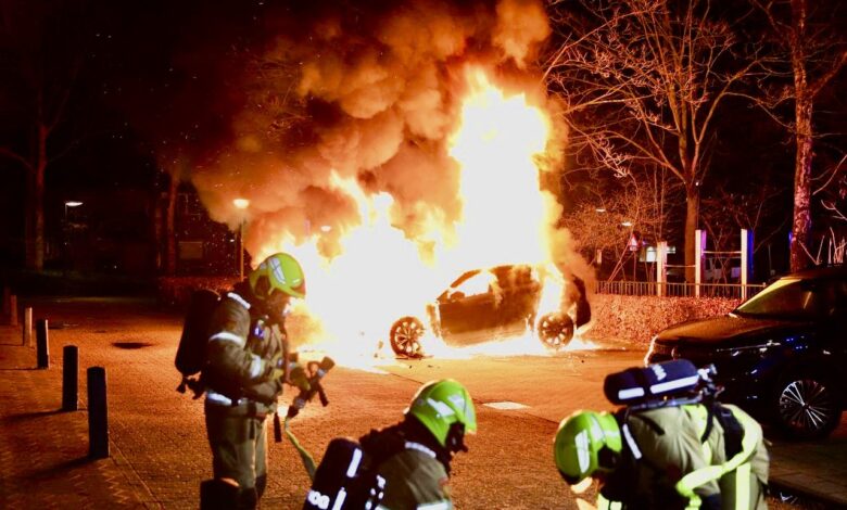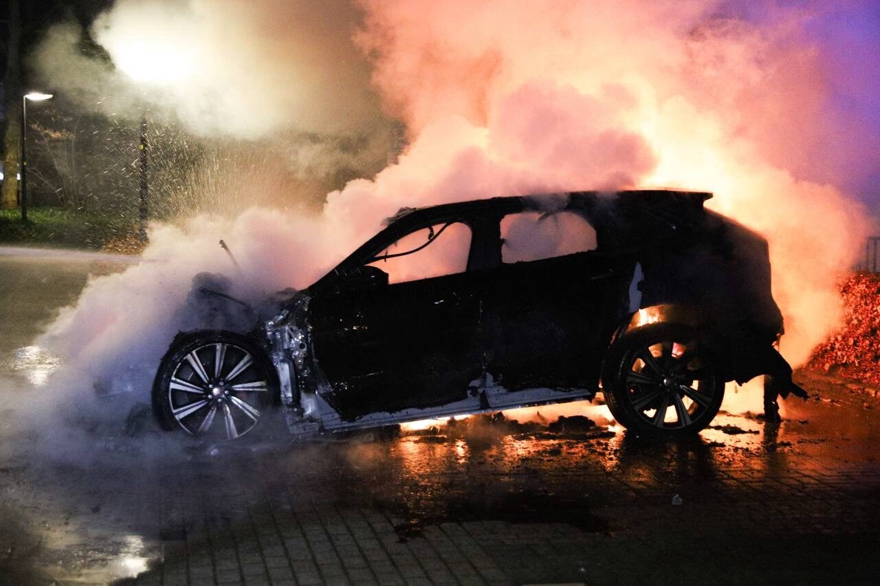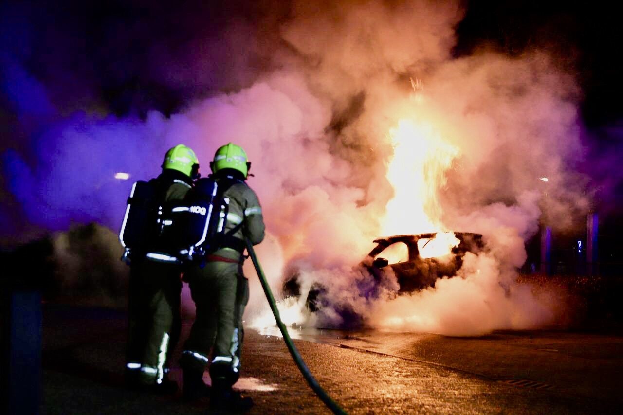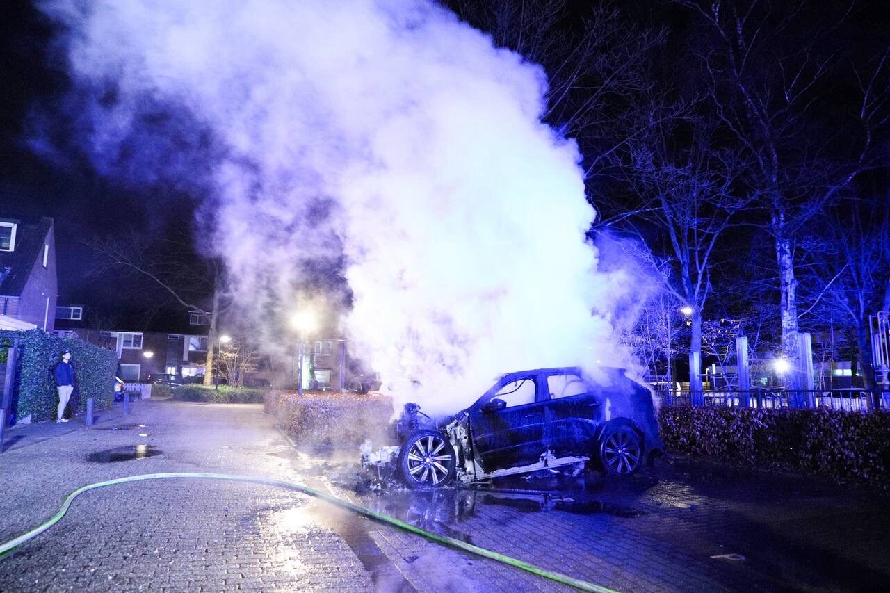 Enorme vuurzee verwoest auto, brandweer lange tijd bezig met blussen