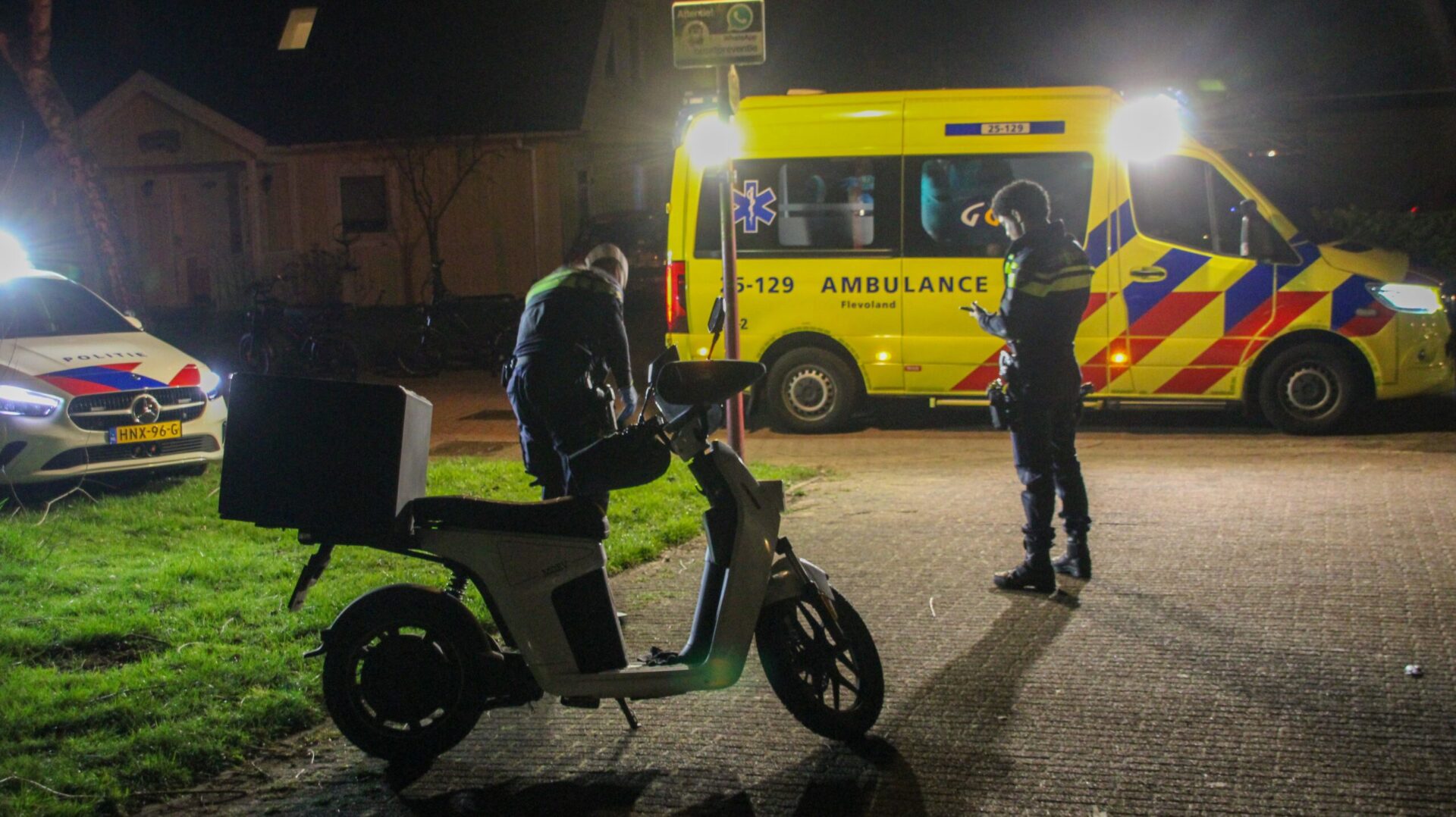 De bezorger werd behandeld in de ambulance, maar hoefde gelukkig niet mee naar het ziekenhuis.