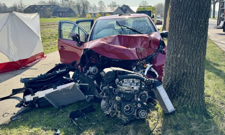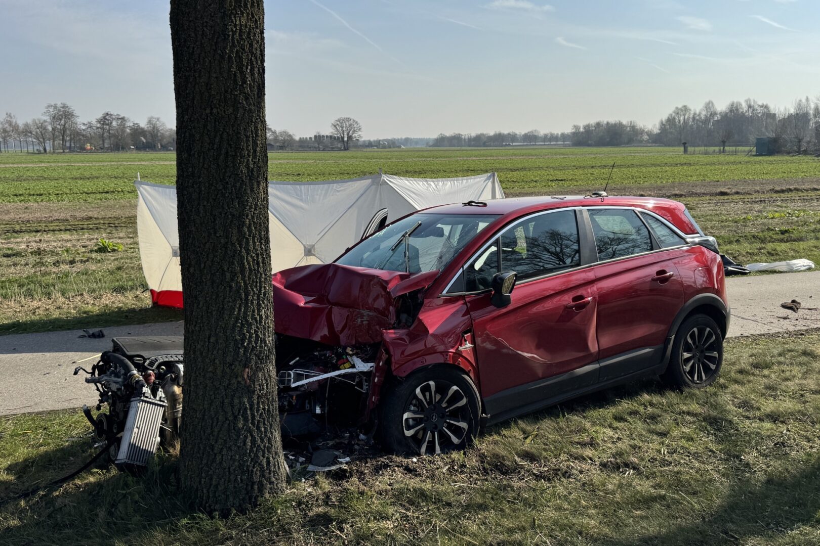 Dode na zeer ernstig eenzijdig ongeval, motorblok uit auto geslingerd