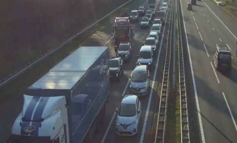 Door het incident zijn twee rijstroken afgesloten voor de afhandeling. Volgens de verkeersinformatie is omrijden geen goed alternatief, omdat ook op de gebruikelijke omleidingsroutes files staan.