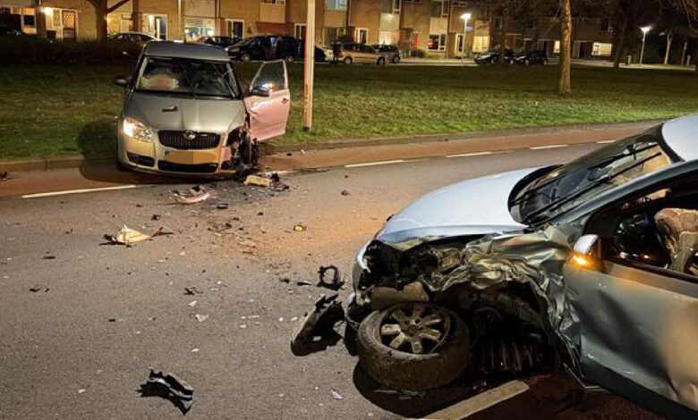 Flinke ravage na frontale botsing tussen twee auto’s