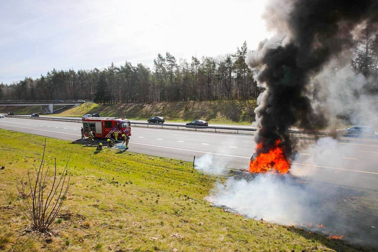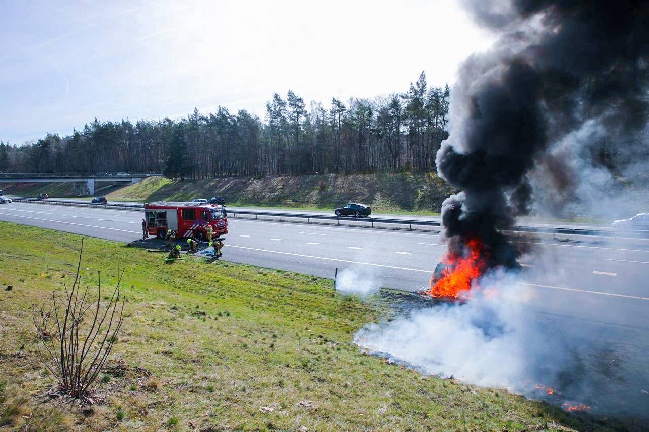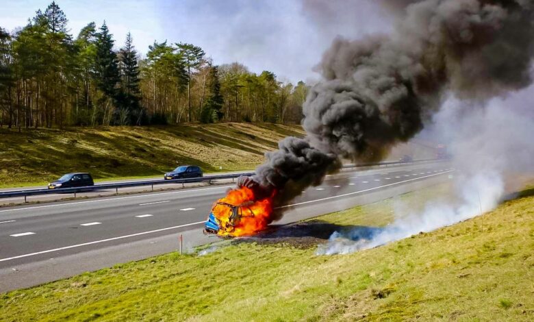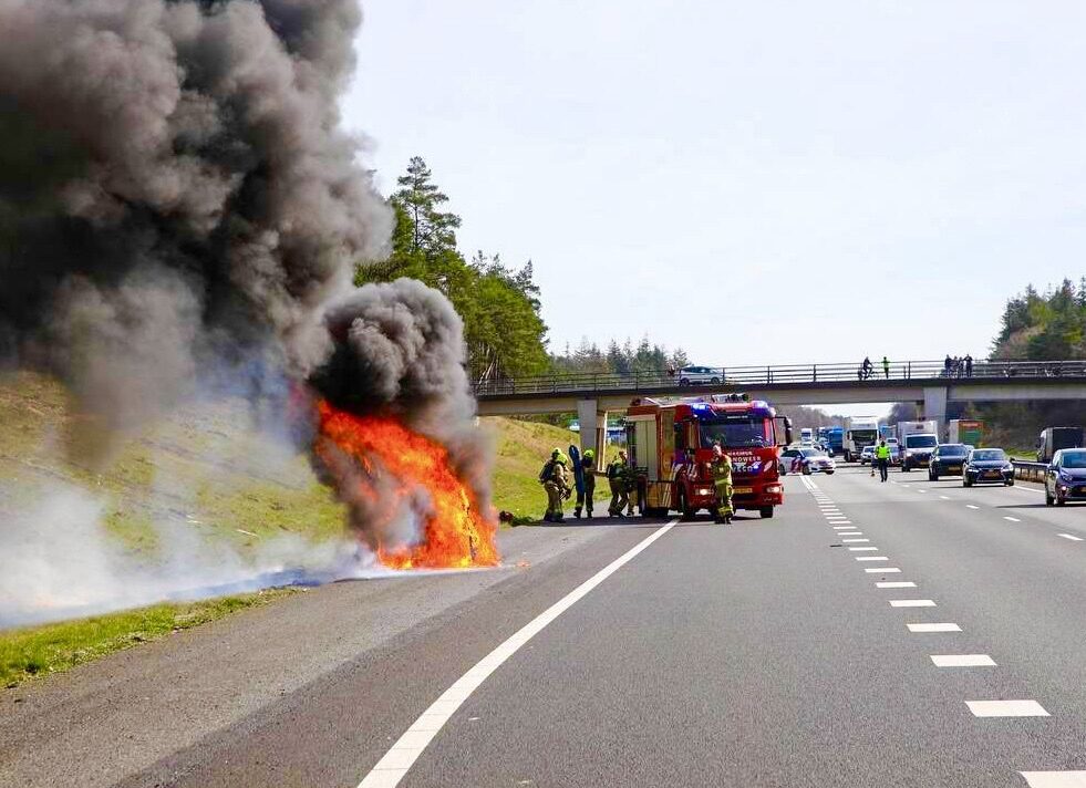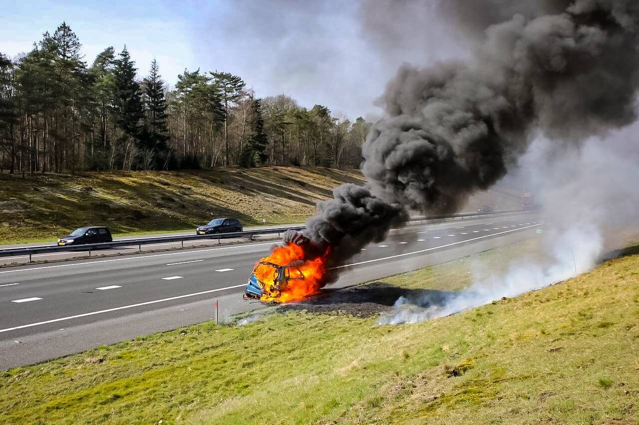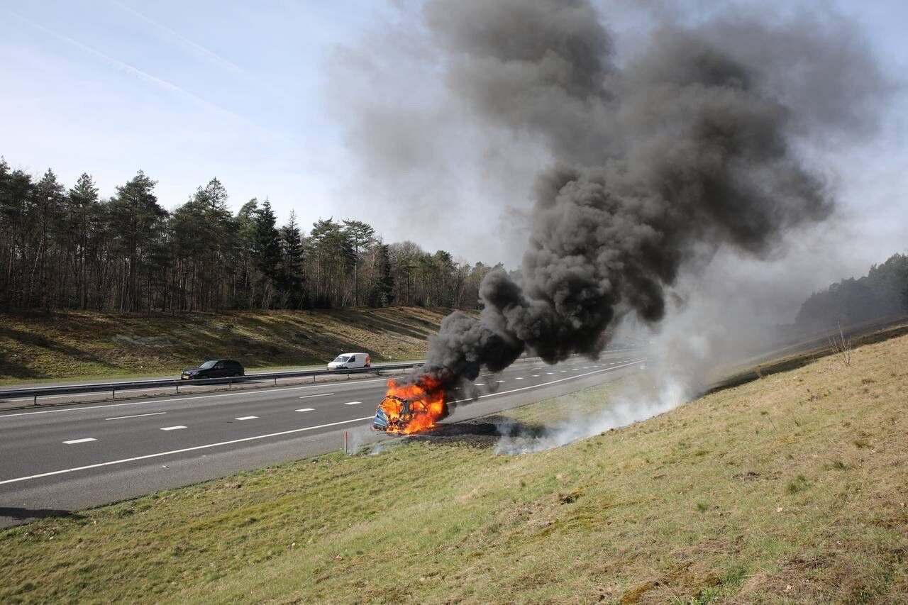 Door de brand is een rijstrook afgesloten, wat zorgt voor flinke verkeershinder.
