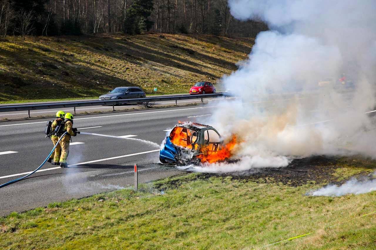 Op de A1 bij Ugchelen is een auto volledig uitgebrand. De bestuurster reed van Apeldoorn richting Amersfoort toen haar auto ter hoogte van Ugchelen begon te roken.
