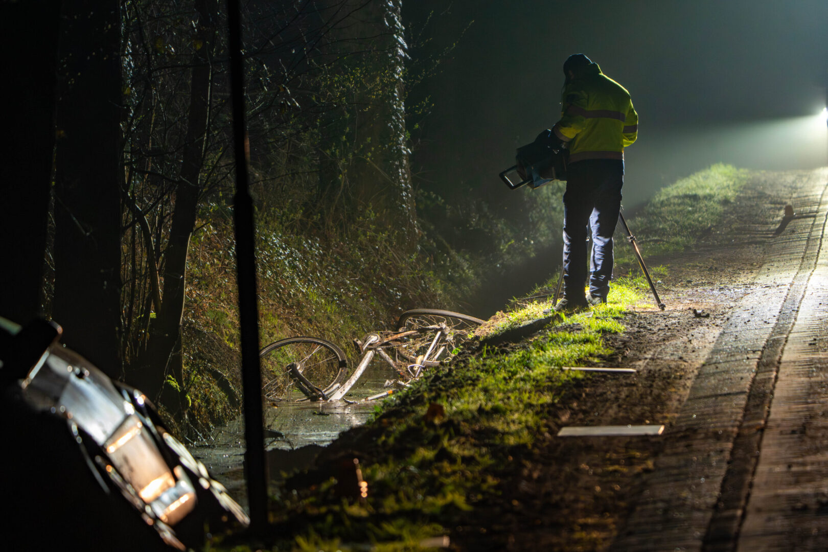 Daarbij kwamen een personenauto en een fietser met elkaar in botsing. Zowel de auto als de fiets belandden na de aanrijding in een naastgelegen greppel. Meerdere hulpdiensten waaronder de brandweer, ambulances en de politie rukten uit en waren snel ter plaatse. Helaas mocht alle toegesnelde hulp niet meer baten voor de fietser. Het slachtoffer overleed ter plekke. De weg werd volledig afgesloten voor verkeer om hulpverlening en onderzoek mogelijk te maken.