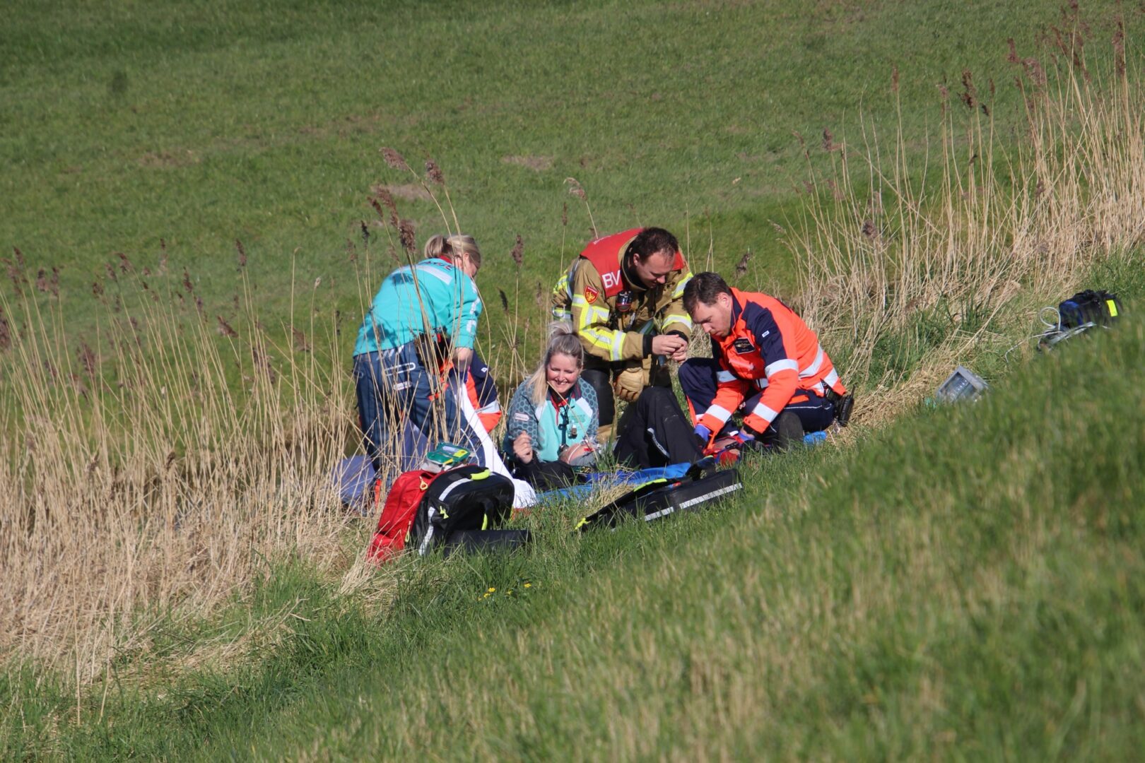 Hulpdiensten rukten massaal uit, waaronder meerdere brandweerwagens, ambulances en een traumateam. De traumahelikopter landde korte tijd later op de dijk om medische assistentie te verlenen.