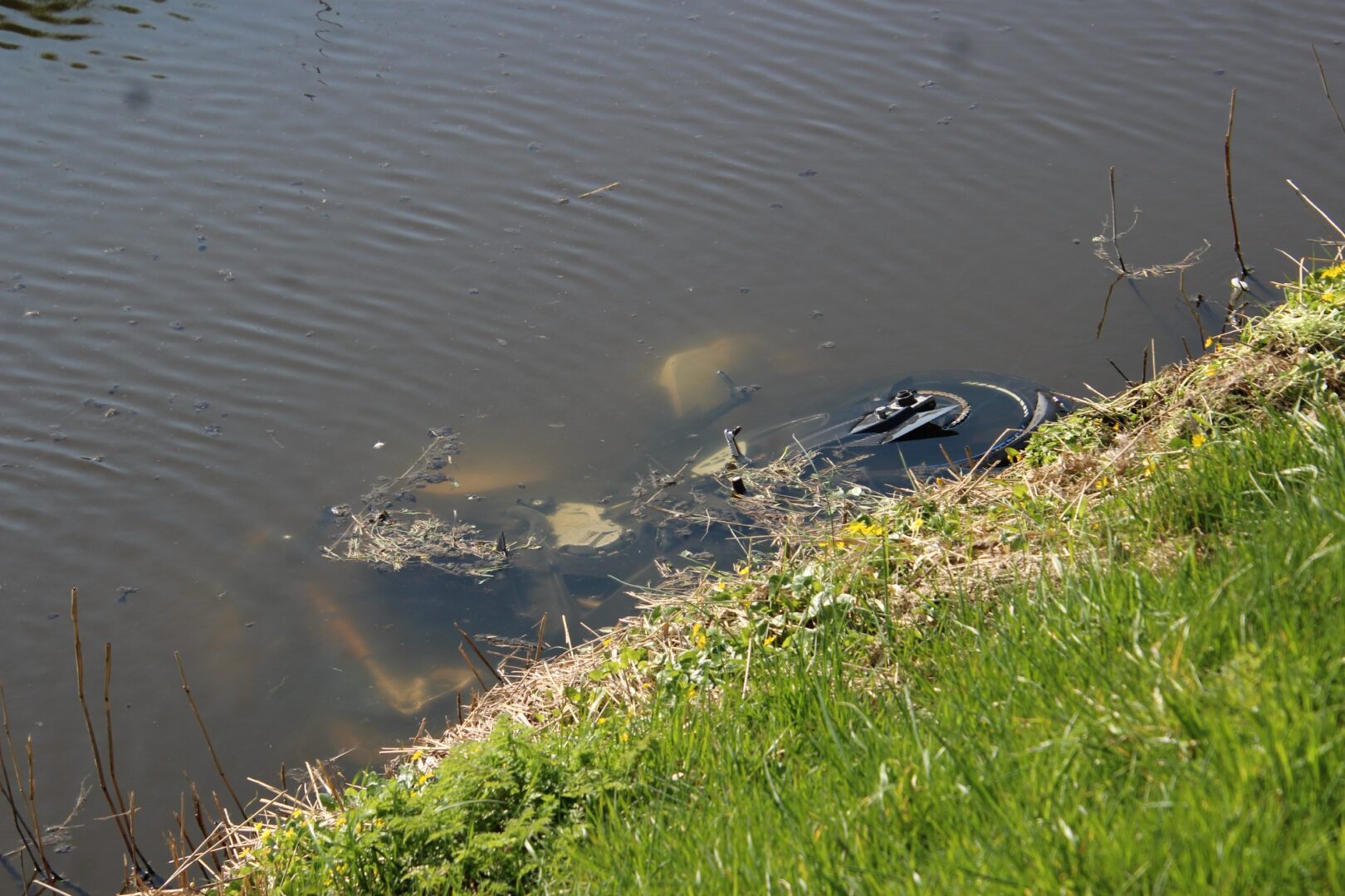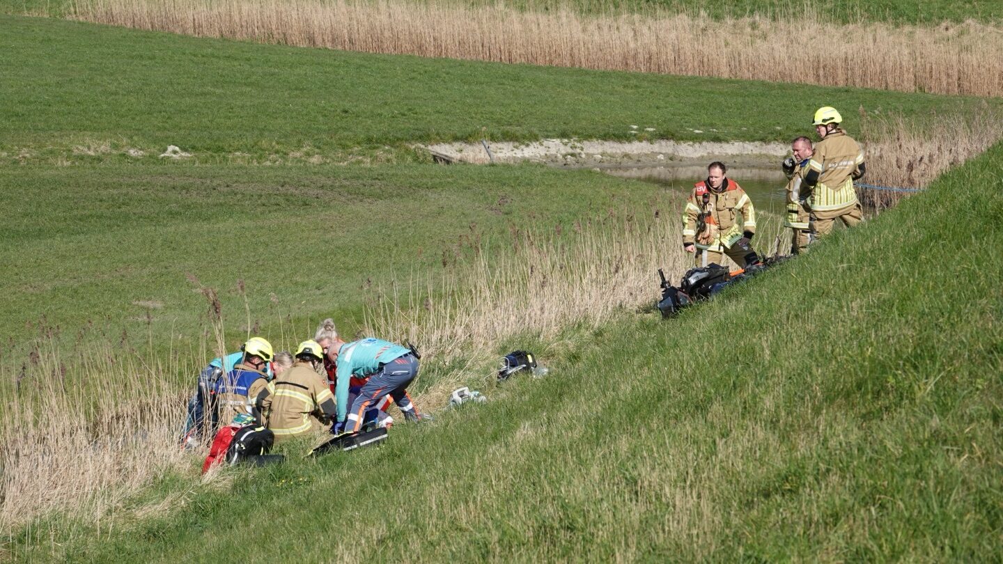 In een bocht op de dijk kwamen twee motorrijders met elkaar in aanrijding, waarbij één van hen van de dijk af vloog en onderaan terechtkwam. Een van de motoren belandde in een sloot.