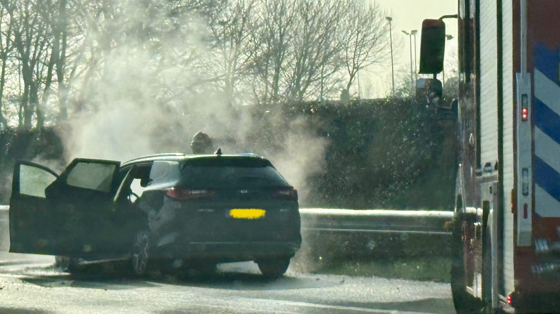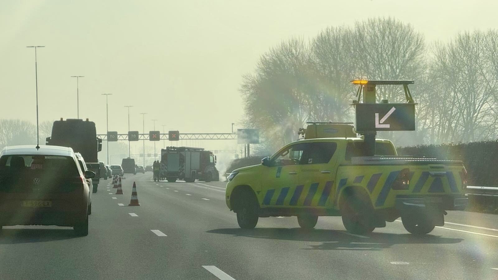 Door een nog onbekende oorzaak vatte de auto op de snelweg vlam. Door de brand zijn twee rijstroken afgesloten, wat voor verkeershinder zorgt. Hoe de brand kon ontstaan, is nog niet bekend. De brand ging gepaard met enige rookontwikkeling.