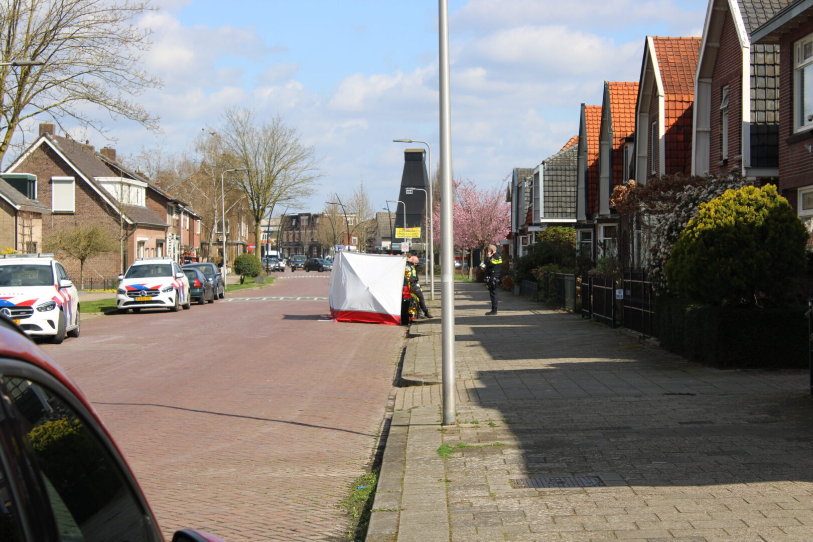 Door de locatie van het incident en om de privacy van de persoon te waarborgen, is er besloten om de brandweer op te roepen om schermen rond de auto te plaatsen.