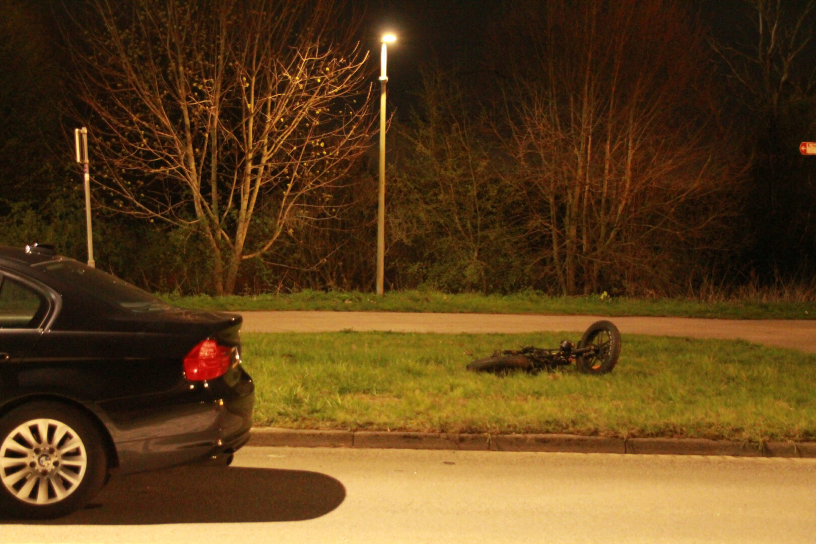 Op de kruising van een fietspad met de weg botste een auto op een fatbike. Door de klap raakte de voorruit van de auto volledig verbrijzeld. Hulpdiensten rukten massaal uit: twee ambulances en een traumahelikopter werden met spoed opgeroepen.