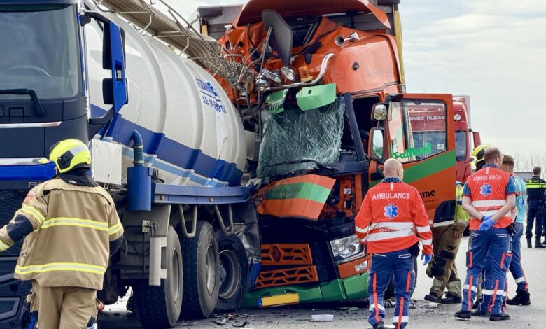 Ernstig ongeval met twee vrachtwagens; snelweg volledig dicht