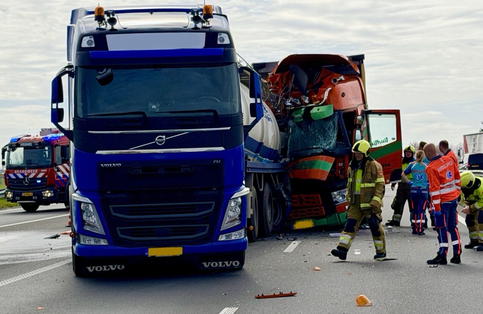 De A50 is vrijdagmiddag afgesloten tussen Sint-Oedenrode en Veghel-Noord na een botsing tussen twee vrachtwagens.