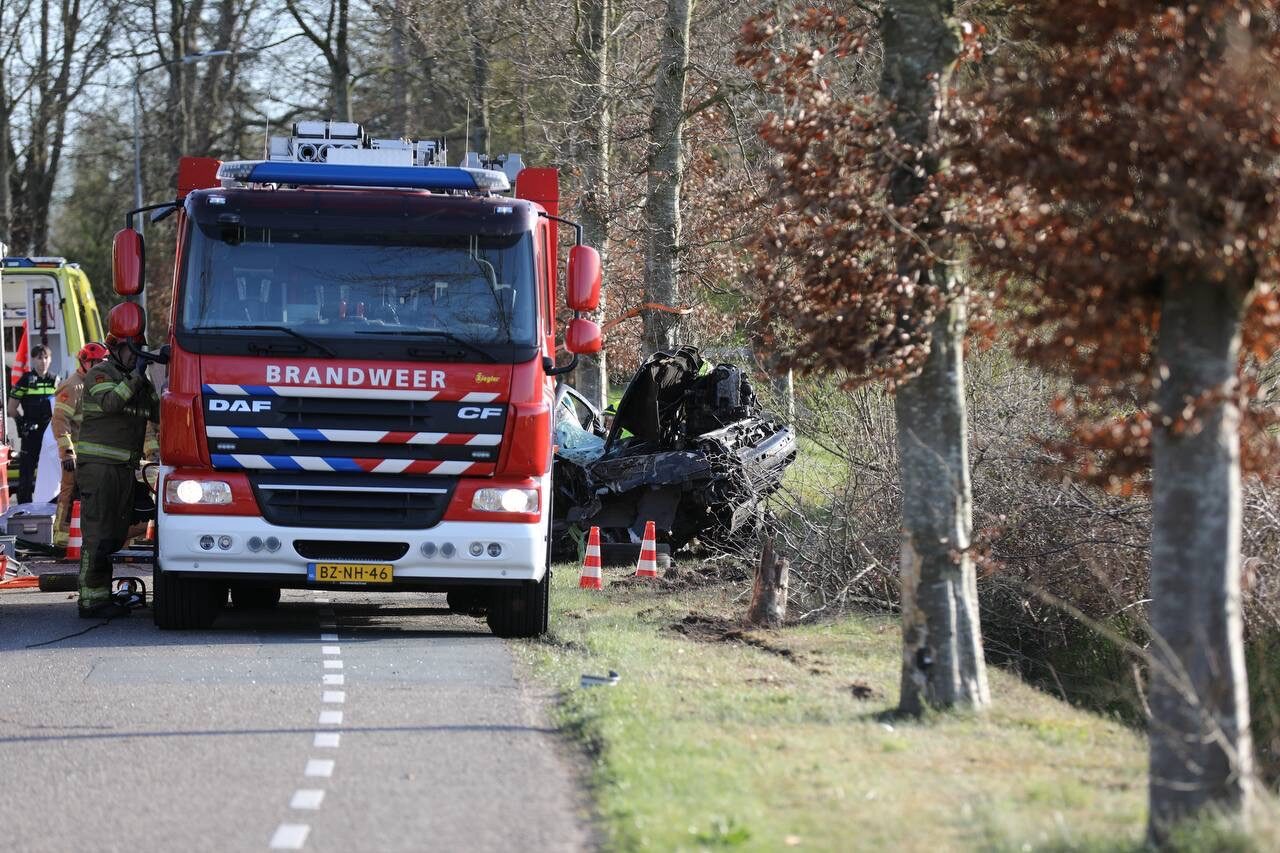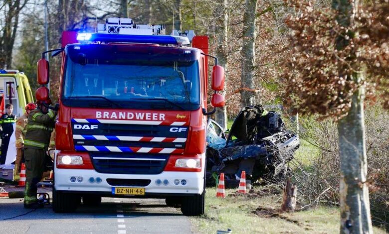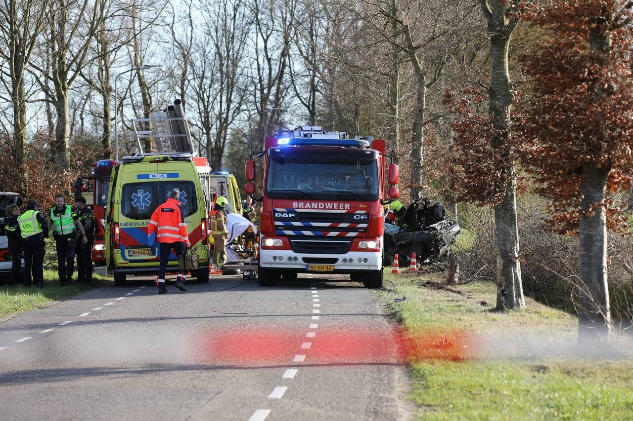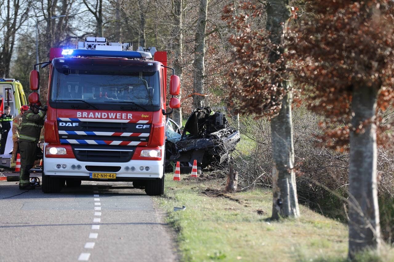 Bestuurder ernstig gewond na heftig ongeval; auto botst tegen boom