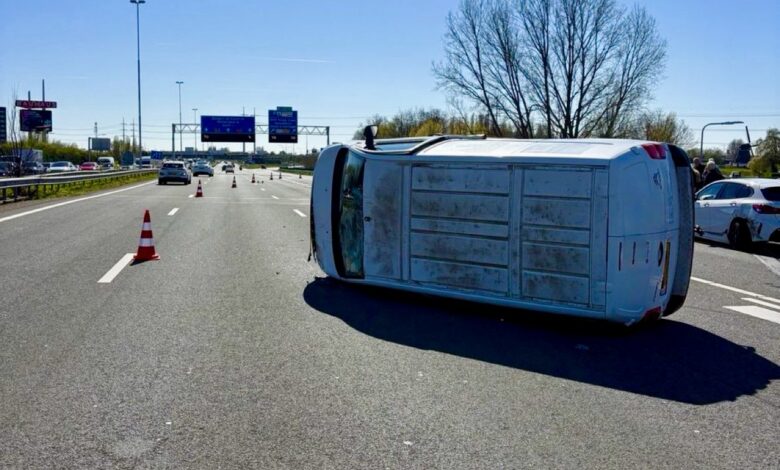 Gekanteld busje zorgt voor ruim 70 minuten file