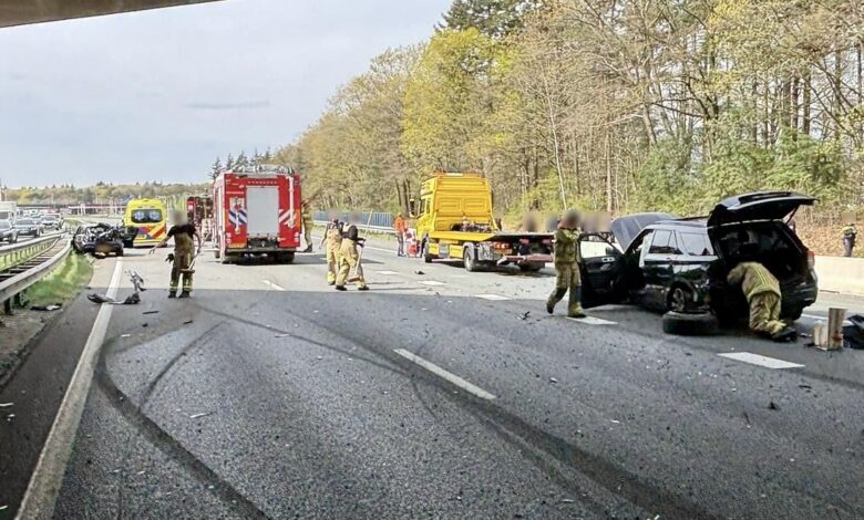Flinke ravage en snelweg dicht na ongeval tussen twee voertuigen